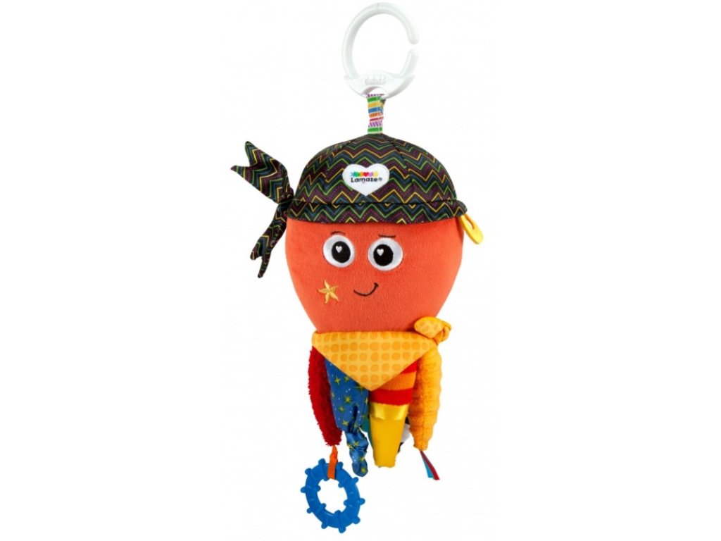 Kapitán Karel. Kapitán Karel je vyroben z různě strukturovaných a barevných materiálů, které stimulují zrak, hmat a rozvíjí motoriku. Některá chapadla při doteku šustí. Kousátko ve tvaru námořního kruhu uleví při prořezávání zoubků bolavým dásním. Kontrastní černobílé vzory na jednom z chapadel pomáhají správnému rozvoji zraku v první vývojové fázi dítěte. Charakteristický tvar očí upoutává dětskou pozornost a podporuje rozvoj koncentrace. Vhodné od narození. Rozměry: cca 25 cm. 1. jakost.Doplňkové parametry