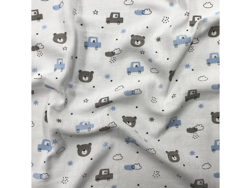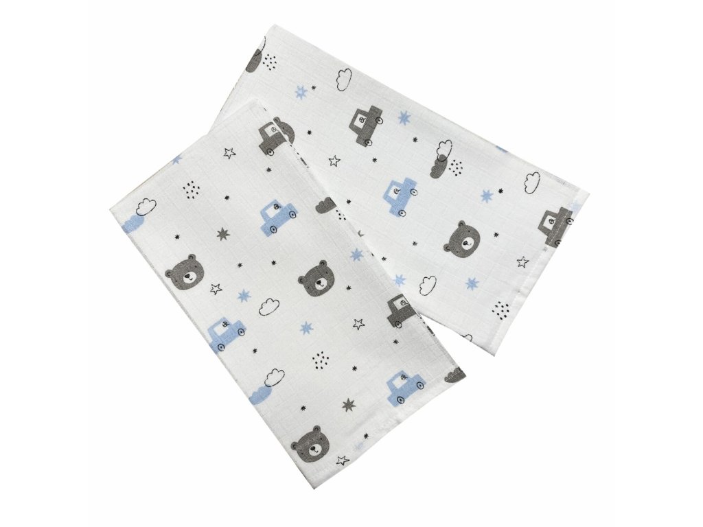 Látková plena 70x70 cm Méďa a auto (balení 5 ks)