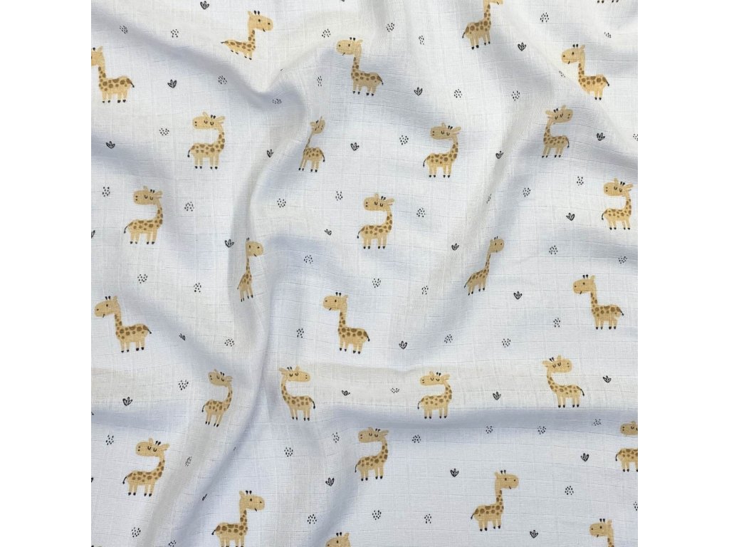 - jedná se o tetra plenu s motivem žiraf - plena je tkaná v klasické dutinné vazbě s typickou čtvercovou strukturou. Má dva okraje pevně vytkávané a dva pevně založené (což minimalizuje možnost třepení okrajů při praní a jejím používání)