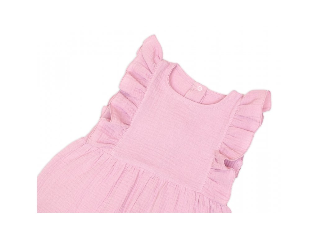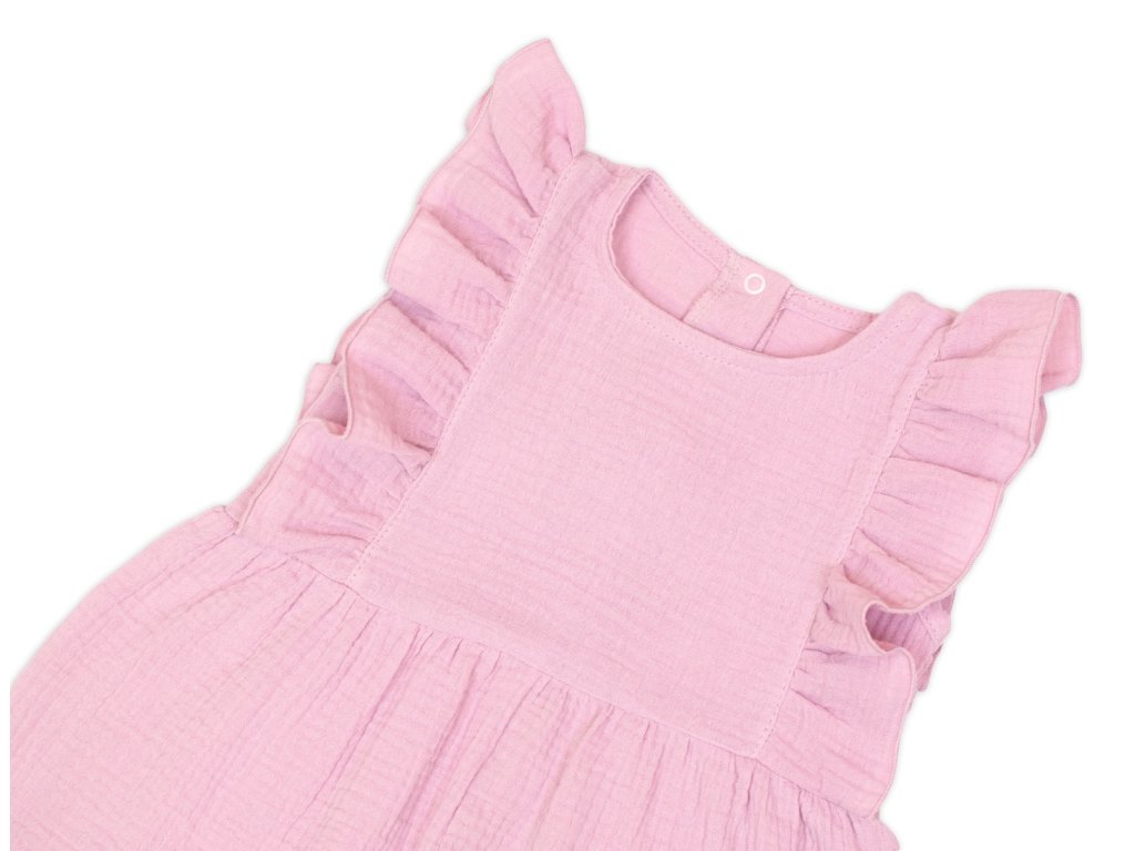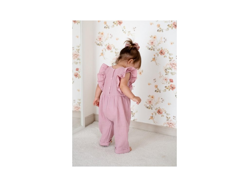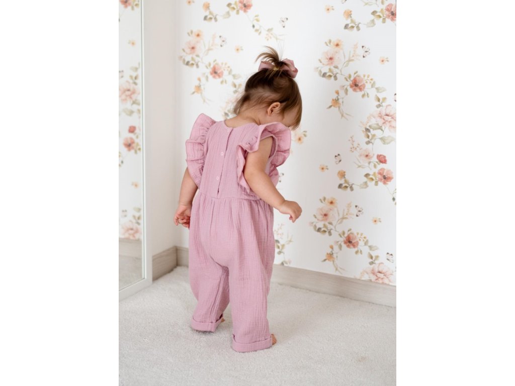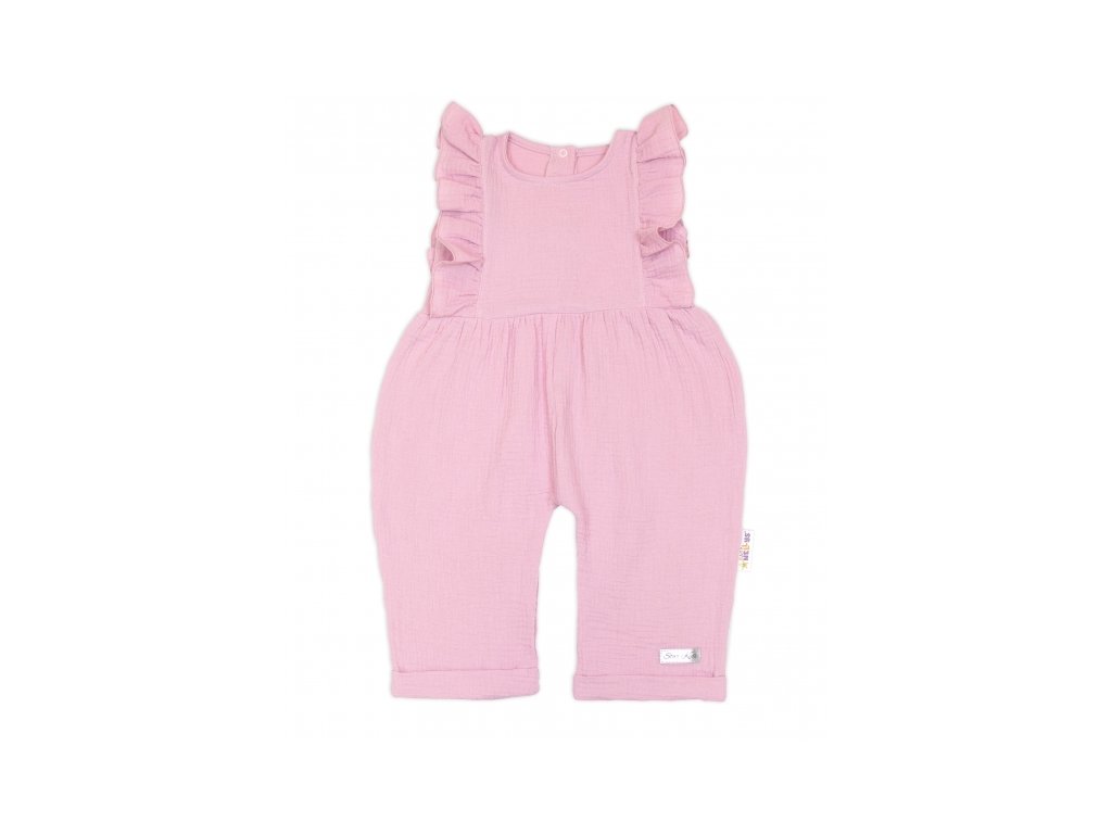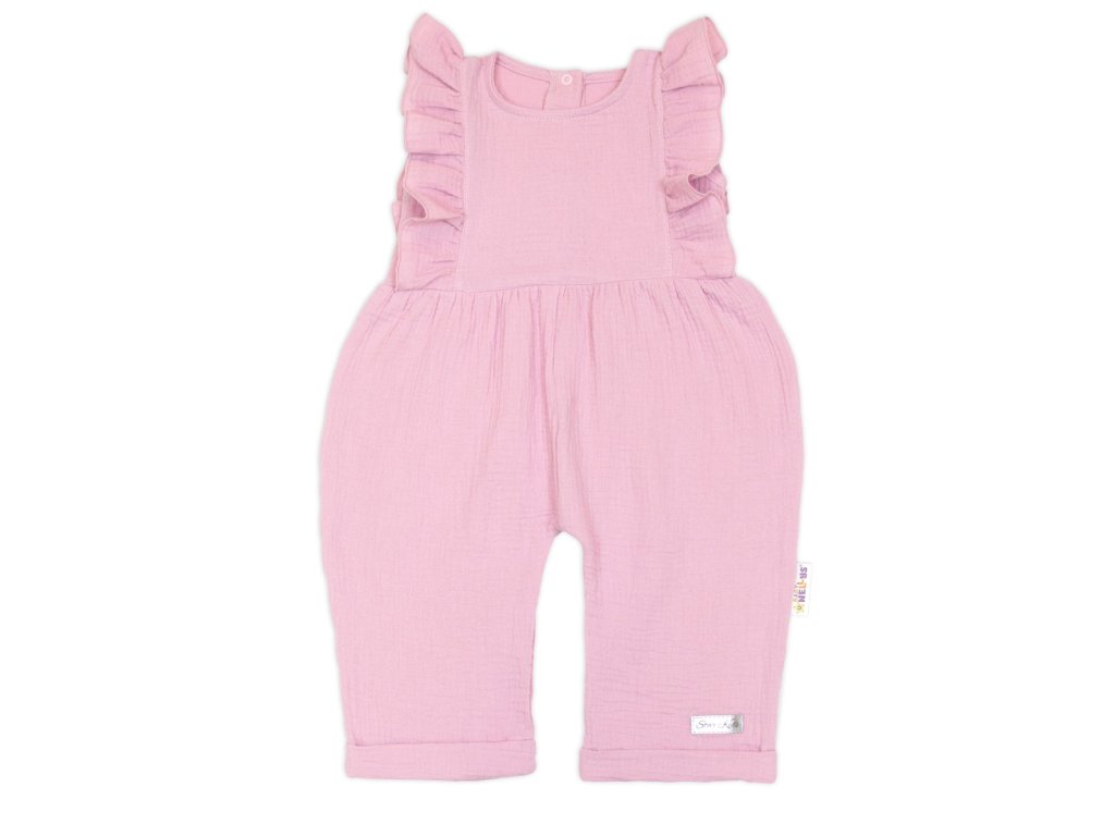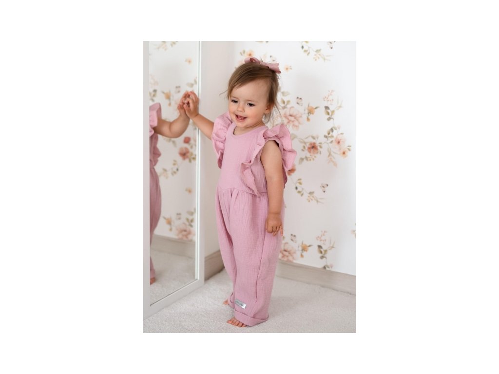 Letní mušelínový overálek pro holčičky s volánkem Star - starorůžová