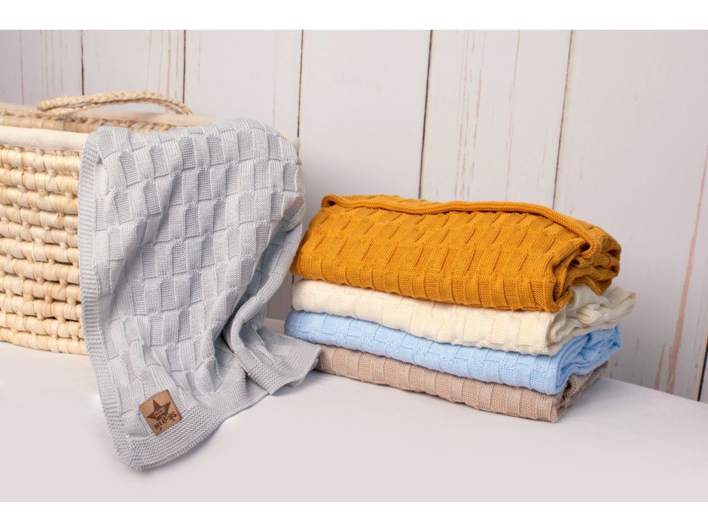 Pletená dečka Baby Nellys ®. Vhodná nejen do kočárku, ale i do autosedačky, postýlky a nebo i jako dečka na křtiny. Dečku můžete využít prakticky kdekoliv, je lehká, prodyšná. Materiál: 100 % bavlna. Rozměr: cca 80 x 100 cm.Doplňkové parametry