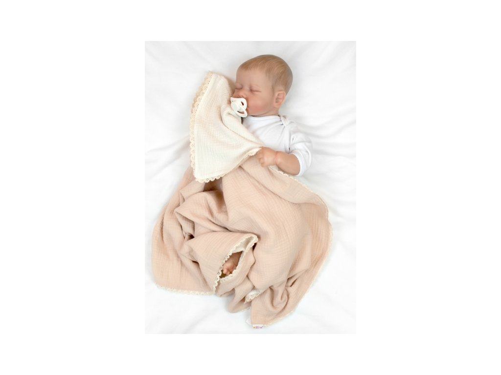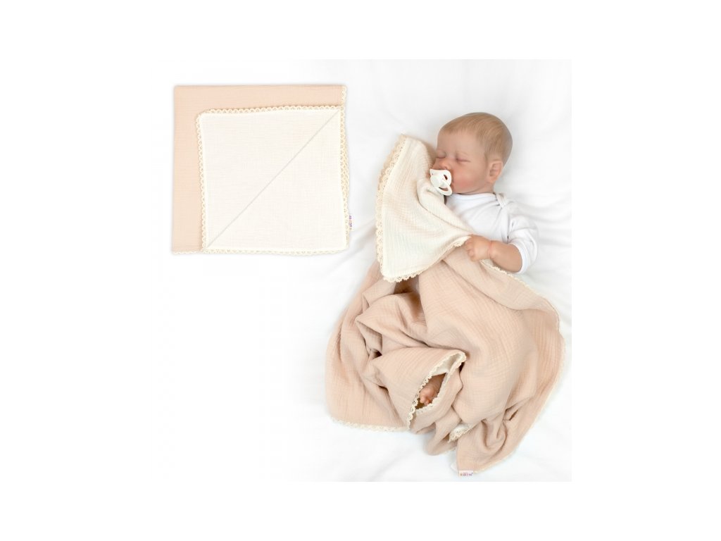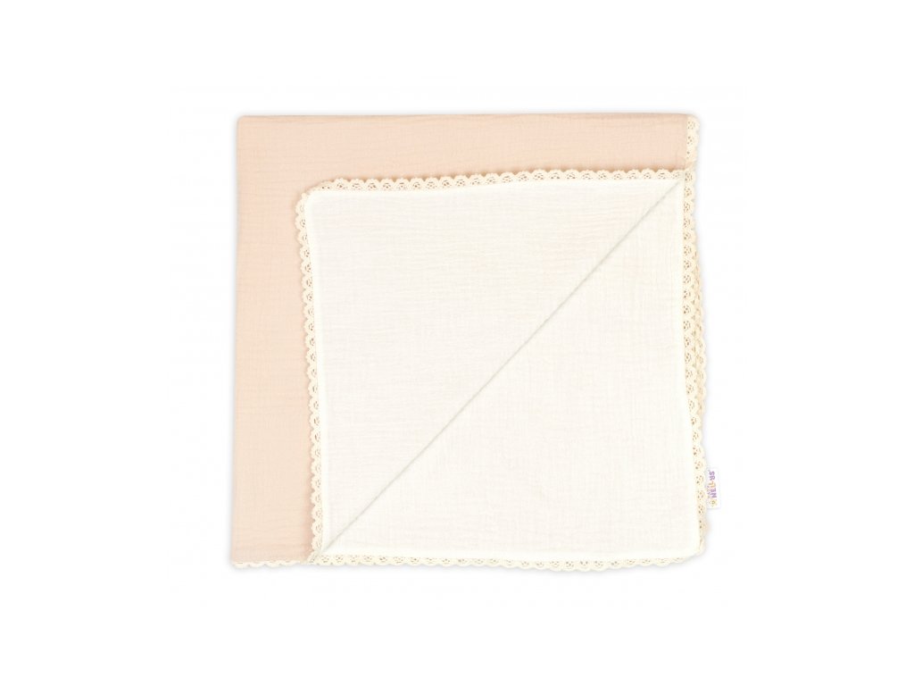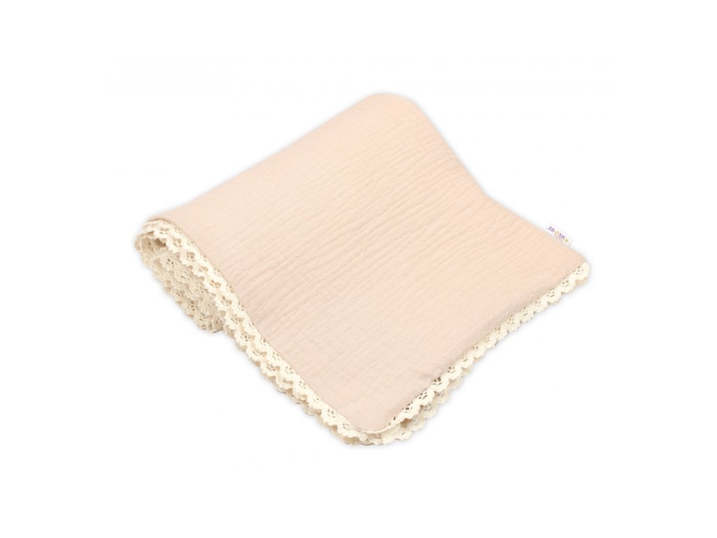 Luxusní mušelínová deka s krajkou Nature 80x80cm - béžová/smetanová