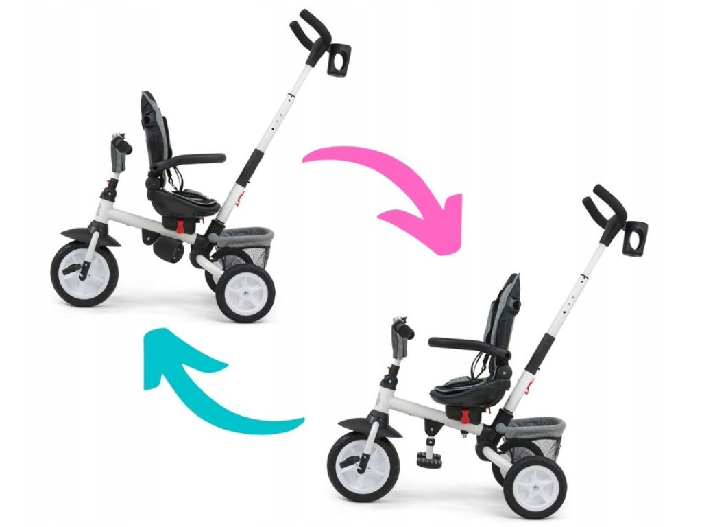 Luxusní Tříkolka Milly Mally Stanley Rubber Pink. Tato neobvyklá tříkolka patří do rodiny GrowUp, takže poroste s vaším dítětem. Kolo Stanley s vámi nejen dlouho zůstane ... Možnost složení kola na malý rozměr z něj udělá dítě provázející při mnoha výletech, výletech a výletech. Často výměna kočárku. Stanley kombinuje 3 funkce: kolo, kočárek a ježdění. Malým i větším dětem jistě udělá spoustu radosti. Stanley je bezpečný a pohodlný dopravní prostředek, kterému kočárek ustoupí. Otočná sedačka vám umožní libovolně nastavit sedačku dopředu, dozadu a dokonce i do stran ke směru jízdy. To vám umožní plynule měnit polohu křesla pro co největší komfort používání. Pohodlná rukojeť pro rodiče určená k ovládání kola umožní plnou kontrolu nad směrem a rychlostí jízdy a zároveň se naučíte jezdit na vlastní pěst. Kolo je vybaveno zábranou chránící dítě před vypadnutím, tříbodovými bezpečnostními pásy a dvěma sadami stupaček. Celek doplňují gumová kolečka zajišťující adekvátní přilnavost a tichou a pohodlnou jízdu na jakémkoli povrchu.Komfortní a profilované sedátko zajistí pohodlí při každé cestě a skládací stříška ochrání miminko před přemírou slunce v horkých dnech. Technické údaje: - Výška 109 cm. - Nastavení výšky rukojeti: 103-106-109 cm - Šířka řídítek: 41 cm - Výška k řídítkům: 61 cm - Délka od zadního k přednímu kolu: 81 cm - Celková délka 107 cm - Šířka kola: 58 cm - Průměr kol: přední - 24 cm, zadní - 20 cm - Vzdálenost od okraje sedáku k pedálům: minimálně 35 cm, maximálně 38 cm - Vzdálenost od okraje sedla k řídítkům: 11,5 cm - Výška opěradla: 41 cm - Výška k sedáku: 40 cm - Šířka zábradlí je 36 cm - Vzdálenost mezi kolejnicemi a sedákem je 20 cm - Šířka opěradla 27 cm - Hloubka sedáku 21 cm - Šířka sedáku 28,5 cm Maximální nosnost do 25 kg Maximální zatížení koše je do 3 kg Hmotnost: 10,3 kg Vhodné pro děti od 10 m +.Doplňkové parametry