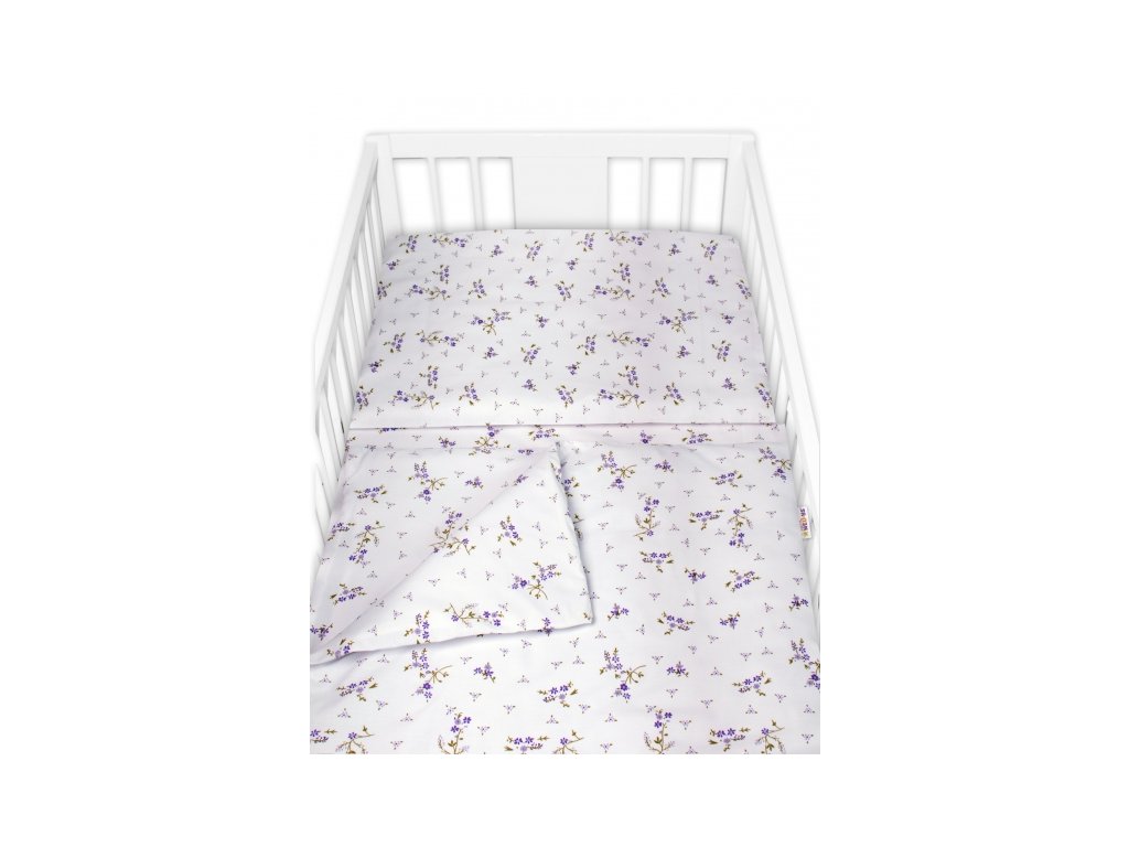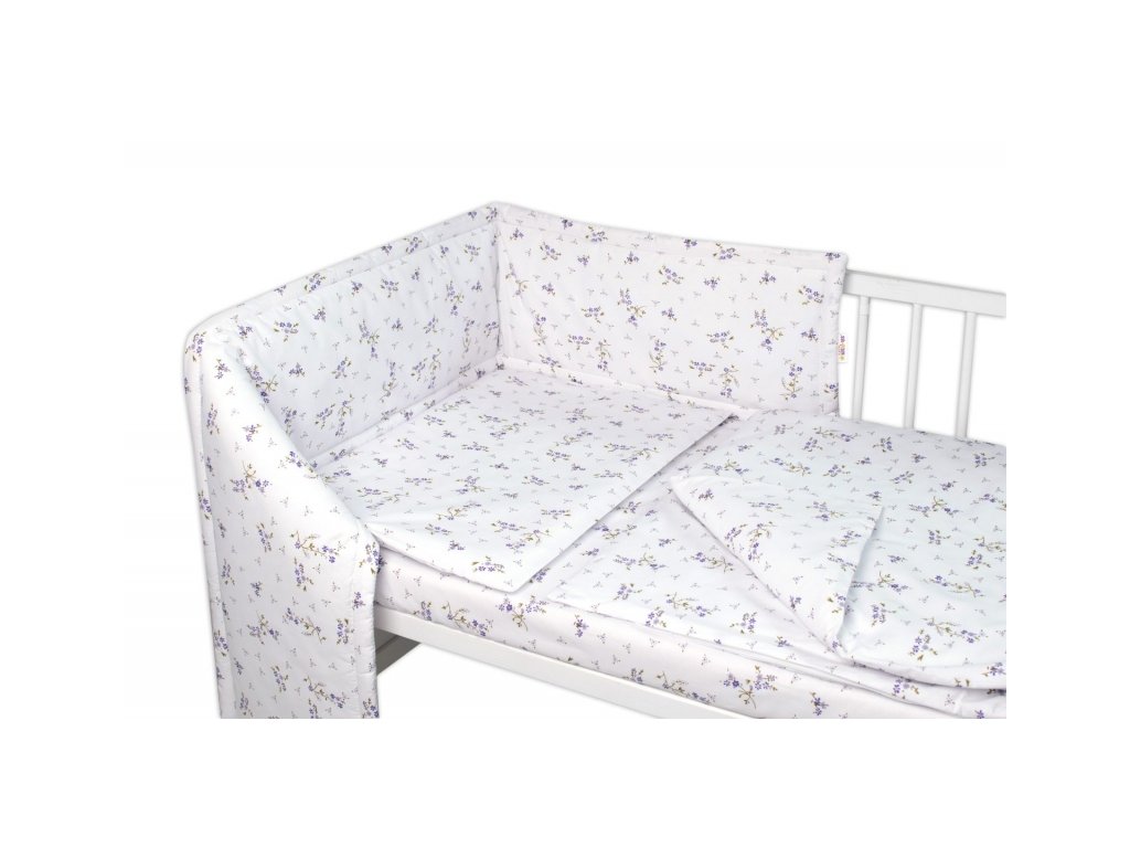 Mantinel s povlečením, 3dílná sada Levandule, Baby Nellys, bílá/fialová