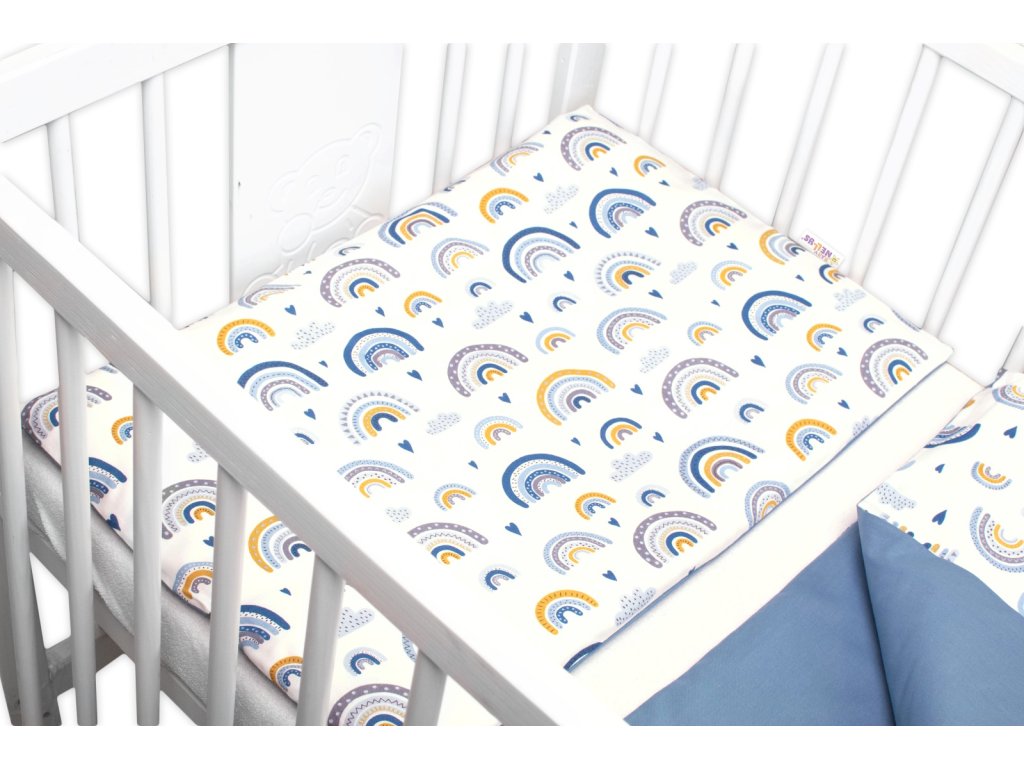 Mantinel s povlečením 3D, Duha, pastelová s potiskem/modrá, Baby Nellys
