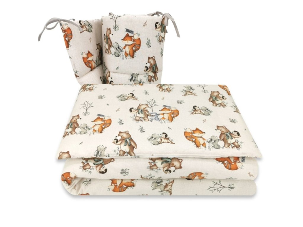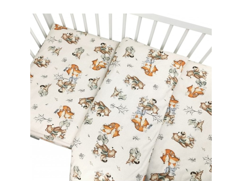 3-dílný set do postýlky. Materiál: 100% přírodní bavlna, která je extrémně měkká, příjemná na dotek a zároveň odolná při používání. Výjimečná měkkost bavlny podporuje relaxaci a zpříjemňuje spánek vašeho dítěte. Tlumené vzory a barvy dělají povlečení subtilní a elegantní. Moderní design zaručuje spokojenost a dokonale zapadá do aktuálních trendů. Bezpečné zapínání na zip - vyloučeno vdechnutí knoflíku apod. Sada obsahuje: povlak na přikrývku, povlak na polštář a mantinel. Rozměry cca +/- 3cm: Peřinka: 120x90 cm/135x100cm dle výběru zákazníkem v menu. Z obou stran 100% bavlna. Polštářek: 40x60cm. 100% bavlna. Mantinel:180x30 cm (Antialergická výplň - vložka ze 100% silikonizovaného polyesteru, upevňuje se pomocí 8-mi stuh). Vše vyrobeno z kvalitní přírodní bavlny - měkká na omak, neškrábe, neobsahuje žádné škodlivé látky. Po vyprání neztrácí barvu. Bavlna s certifikátem EU pro ekologii textilu OKO-TEX. Při údržbě/praní se vždy řiďte pokyny uvedenými na štítku výrobce! Nenechávejte dítě samo bez dozoru. Obal není hračka, odstraňte ho z dosahu dítěte. Údržba - lze prát v pračce na 30°C, odstřeďovat max. 800. Certifikováno, atest, (zboží určené pro děti). Bavlna s certifikátem EU pro ekologii textilu OKO-TEX. Upozornění: Zboží je ušité strojově a proto může dojít k mírnému posunutí vzoru. Vzor se tedy nemusí nacházet na stejné pozici jak na fotografii.Doplňkové parametry