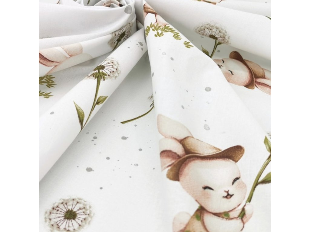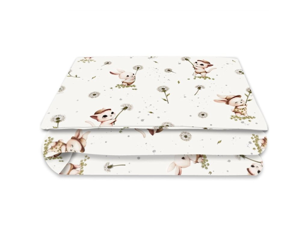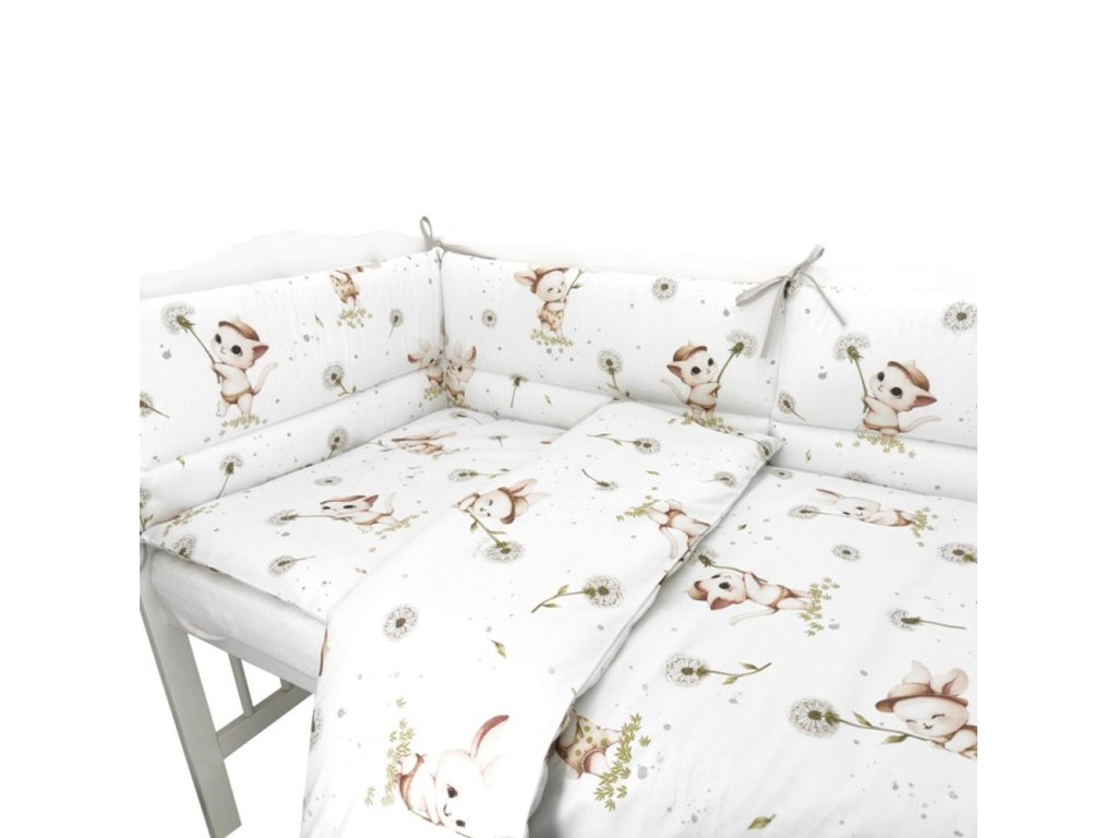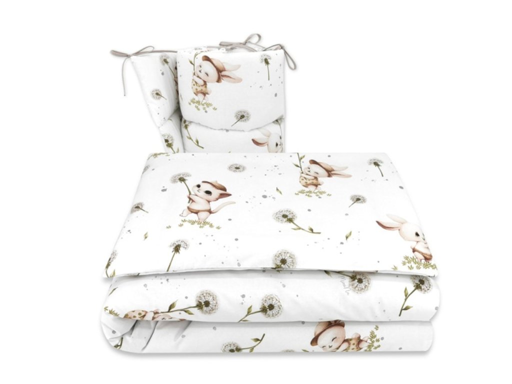 Mantinel s povlečením do postýlky, 3D sada Bavlna, Kocourek a pampeliška - bílá