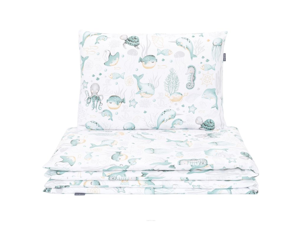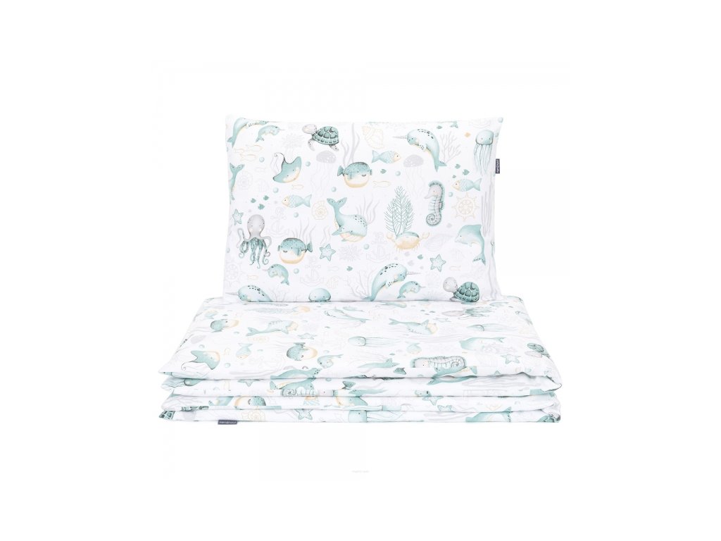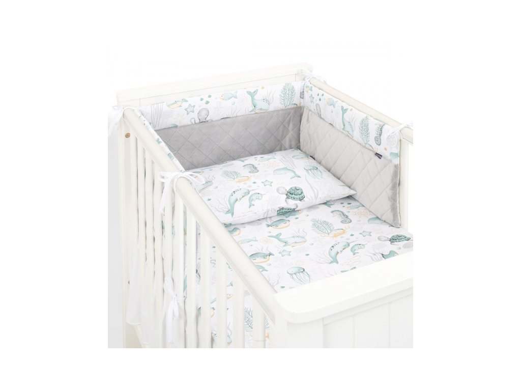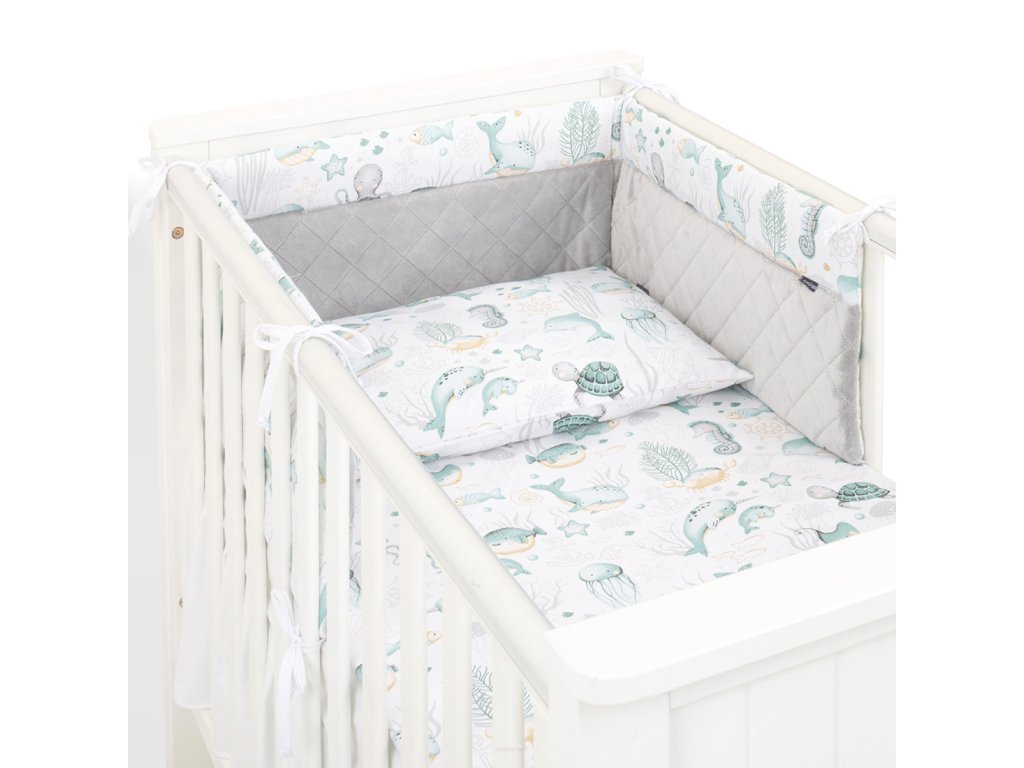 Mantinel s povlečením do postýlky, 3D sada Minky, Oceán, zelená/šedá/bílá
