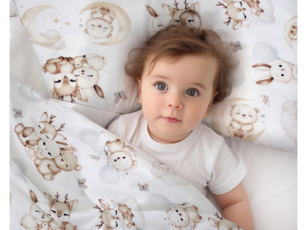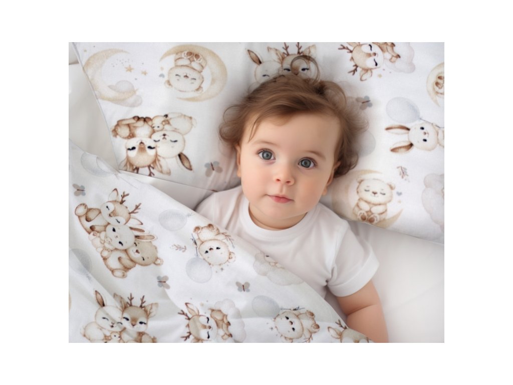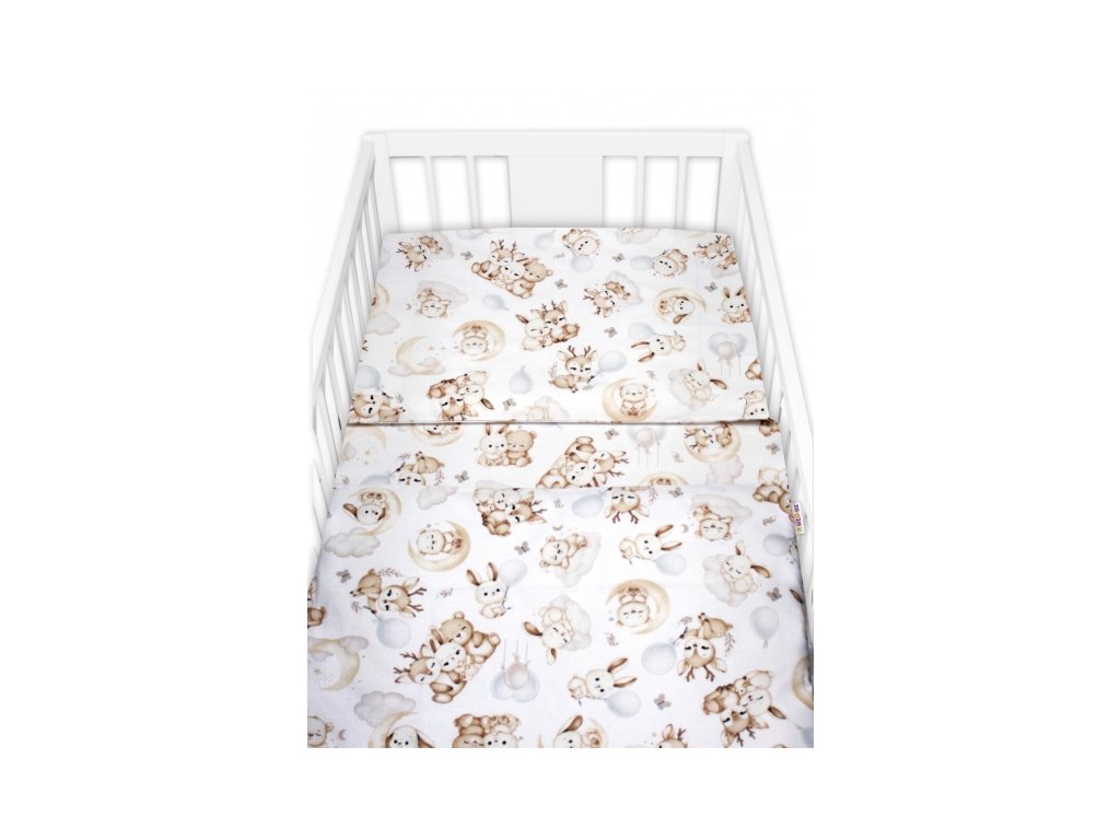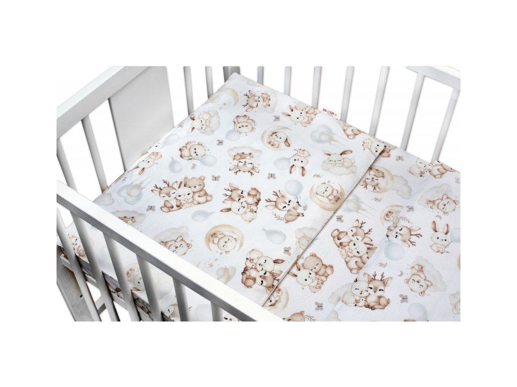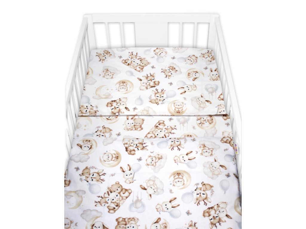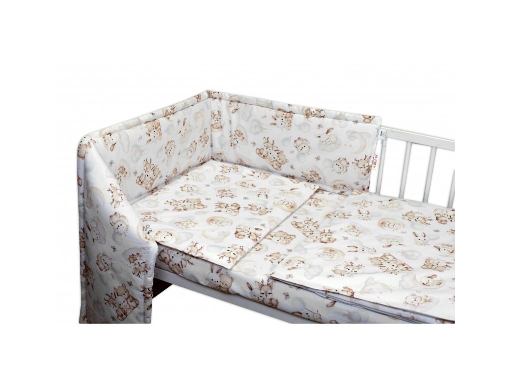 Mantinel s povlečením do postýlky, 3D sada - Sny zvířátek, bílá/hnědá