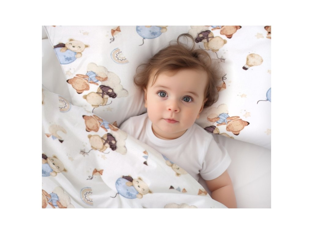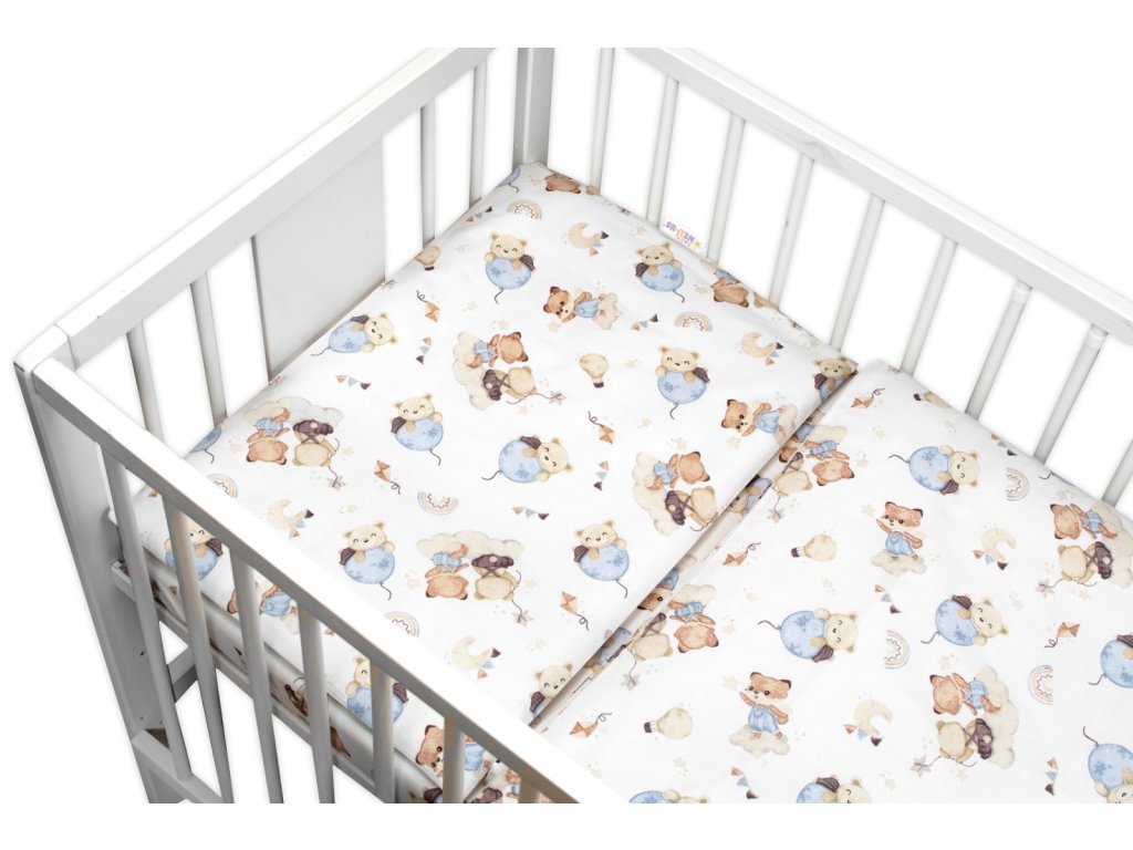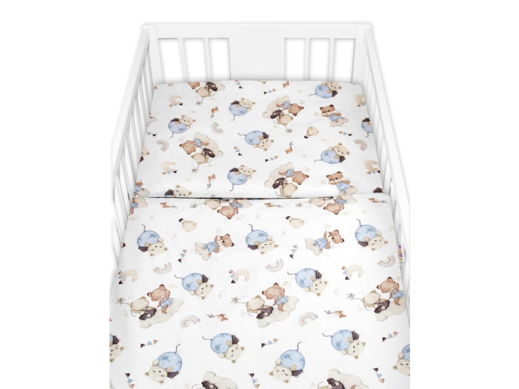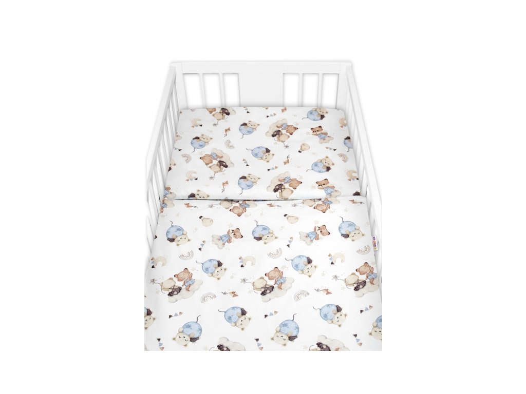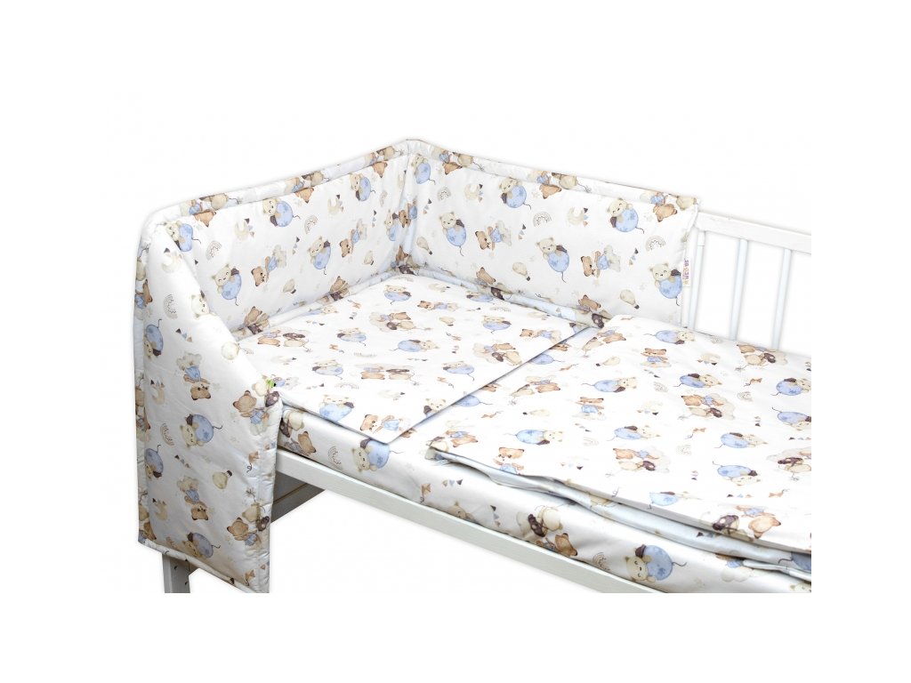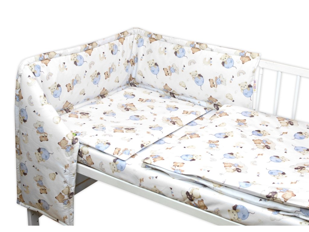 Mantinel s povlečením do postýlky, 3D sada - Zábava s balónky, bílá/modrá