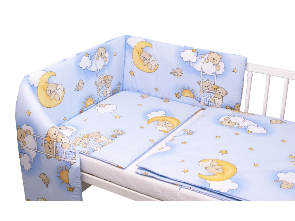 Mantinel s povlečením Premium, 3D sada, Medvídek na žebříku, modrý, 120x90 cm