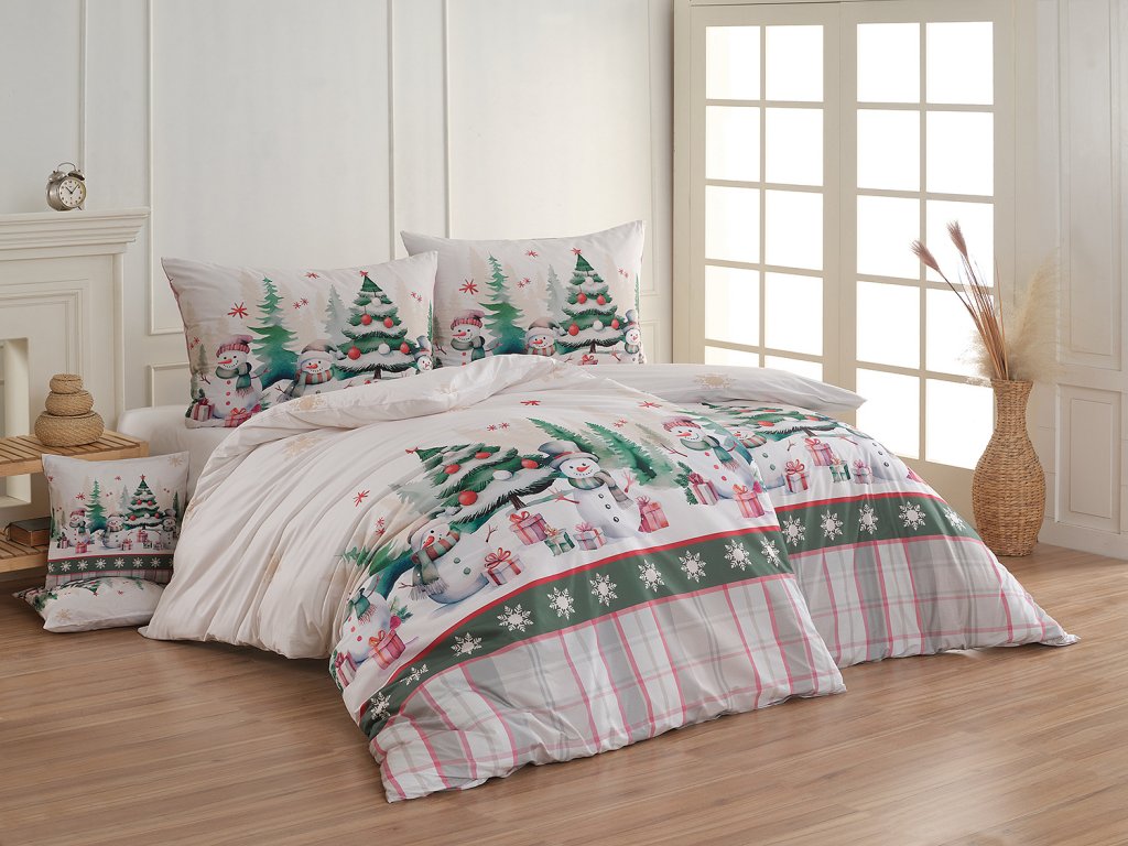 Materiál: 100% bavlnaPovlak na přikrývku je z obou stran stejný. Povlak na polštář zachycuje na vrchní straně kreslený motiv sněhuláků a v pravém dolním rohu je umístěno malé logo "M". Spodní stranu povlaku na polštář tvoří stejný károvaný motiv, který zdobí spodní část povlaku na přikrývku. Povlečení je opatřeno komfortním zipovým uzávěrem.