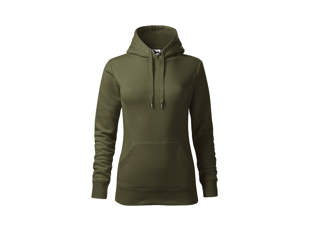 lehce vypasovaný střih s bočními švy kapuce s podšívkou, na stažení šňůrkou vnitřní část průkrčníku začištěna páskou v barvě vrchového materiálu nakládaná kapsa ve stylu klokanky dolní lem a manžety rukávů z žebrového úpletu 2:2 s 5 % elastanu vnitřní strana počesanáVýplňková pletenina, vnitřní strana počesaná 65 % bavlna, 35 % polyester
