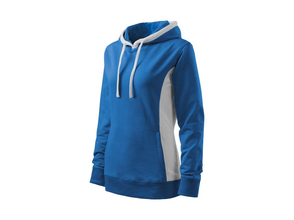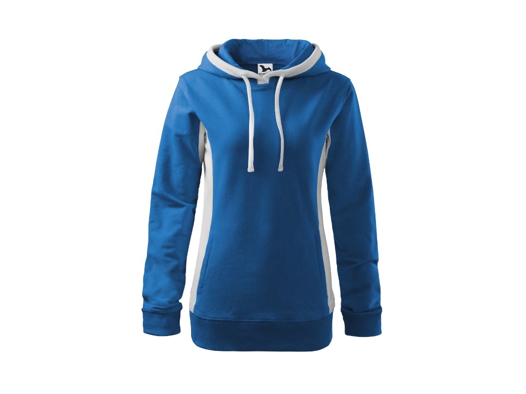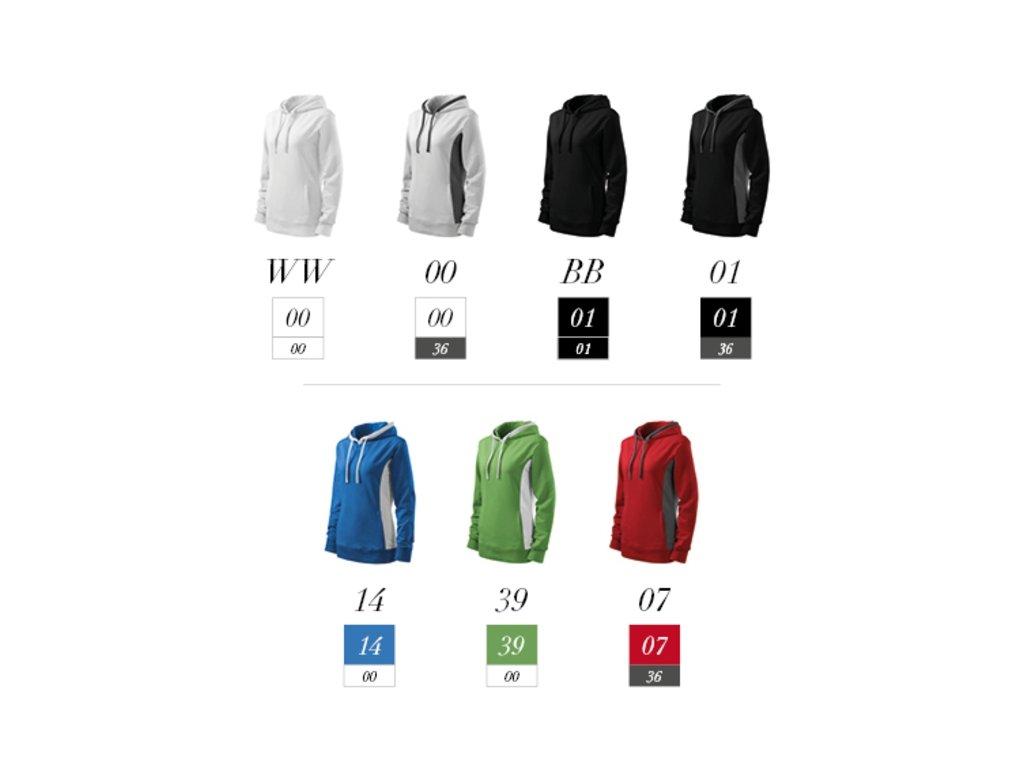 strečový materiál udržující stálost tvaru střih tvarovaný bočními díly kapuce s podšívkou, na stažení šňůrkou lištové kapsy ve stylu klokanky dolní lem, manžety a lem kapuce z žebrového úpletu 2:2 s 5 % elastanu kontrastní prvky (vyjma barev BB a WW) vnitřní strana nepočesanáVýplňková pletenina, vnitřní strana nepočesaná 97 % bavlna, 3 % elastan