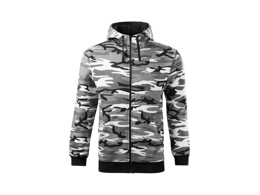 rovný střih s bočními švy celopropínací reverzní spirálový zip kapuce s podšívkou, na stažení šňůrkou vnitřní část průkrčníku začištěna páskou nakládané kapsy ve stylu klokanky dolní lem a manžety rukávů z žebrového úpletu 2:2 s 5 % elastanu kontrastní prvky vnitřní strana počesanáVýplňková pletenina, vnitřní strana počesaná, 65 % bavlna, 35 % polyester