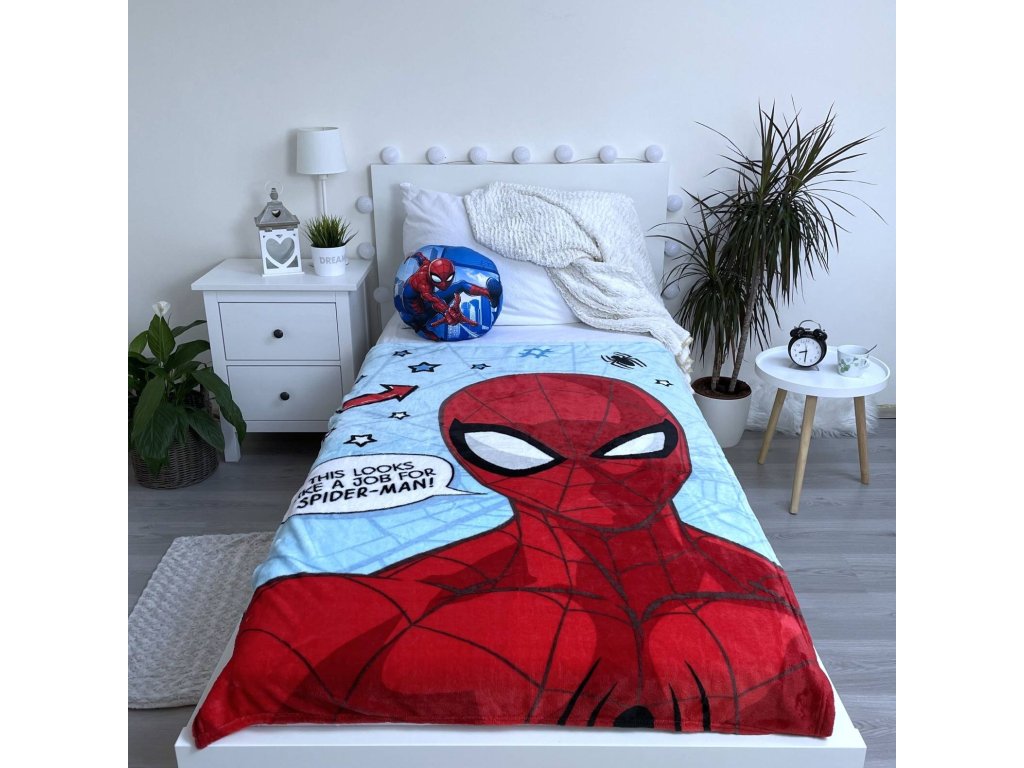 Tato dětská mikroflanelová deka s motivem Spider-Mana je ideální pro malé fanoušky komiksových hrdinů. Deka o rozměru 100x150 cm zobrazuje Spider-Mana v kresleném stylu s bublinou „THIS LOOKS LIKE A JOB FOR SPIDER-MAN!“. Pozadí doplňují pavučiny, hvězdy a ikonický pavouk, což vytváří dynamický a zábavný vzhled.