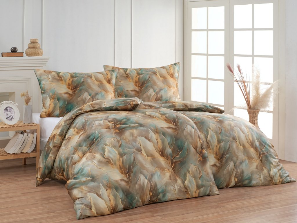 Dopřejte své ložnici styl a eleganci s bavlněným povlečením Monaco. V energickém, abstraktně-florálním vzoru, se snoubí odstíny béžové, hnědé a modrozelené barvy. Dohromady utvářejí magický celek, který podtrhne krásu vaší ložnice. O váš vysněný komfort se postará hebký bavlněný satén vyrobený ze 100% bavlny.Povlak na polštář i na přikrývku je z obou stran stejný, povlečení je opatřeno komfortním zipovým uzávěrem. 100% bavlna