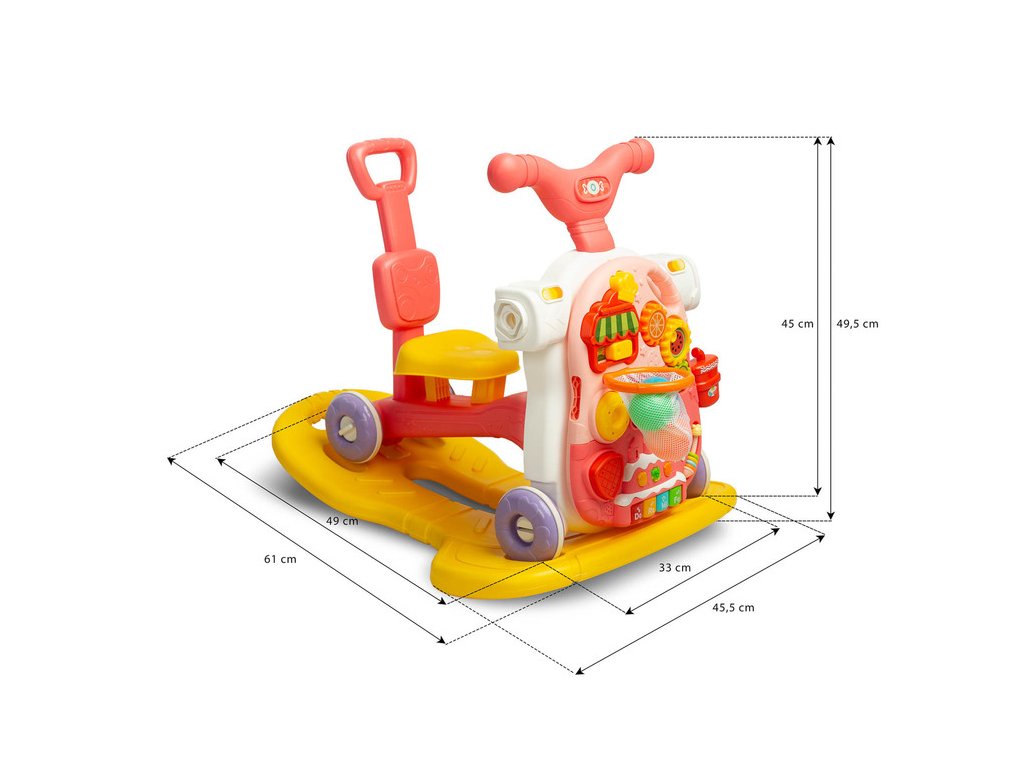 Multifunkční chodítko 5v1 – zábava a vývoj v jednom! Toto moderní a všestranné chodítko 5v1 je ideálním řešením pro malé objevitele, které zaručeně zažene nudu. Barevné prvky, interaktivní panel a široká škála funkcí zajistí hodiny zábavy i podporu v přirozeném rozvoji vašeho dítěte. Hračku lze jednoduše upravit do 5 různých variant: chodítko, koloběžka, houpací vozítko, odrážedlo a stolek . Tento inovativní produkt je vhodný pro děti od 12 měsíců. Klíčové vlastnosti: 5 způsobů použití – chodítko, koloběžka, houpací vozítko, odrážedlo a stolek. Snadná montáž – rychlé a jednoduché sestavení i přeměna. Hudební panel – zábavné melodie, které děti milují. Podpora vývoje – pomáhá rozvíjet koncentraci, motoriku a pozornost dítěte. Stimulace dětských rukou – interaktivní prvky podporují jemnou motoriku. Technické údaje: Věková kategorie: od 12 měsíců Multifunkční provedení pro všestranné použití Vyberte pro své dítě multifunkční chodítko 5v1 a zajistěte mu nejen zábavu, ale i podporu správného vývoje! Ideální volba pro aktivní a hravé děti. Výrobce. IKS 2 Mucha Sp. J. Rybnicka 9 43-190 Mikołów iks2@iks2.plDoplňkové parametry