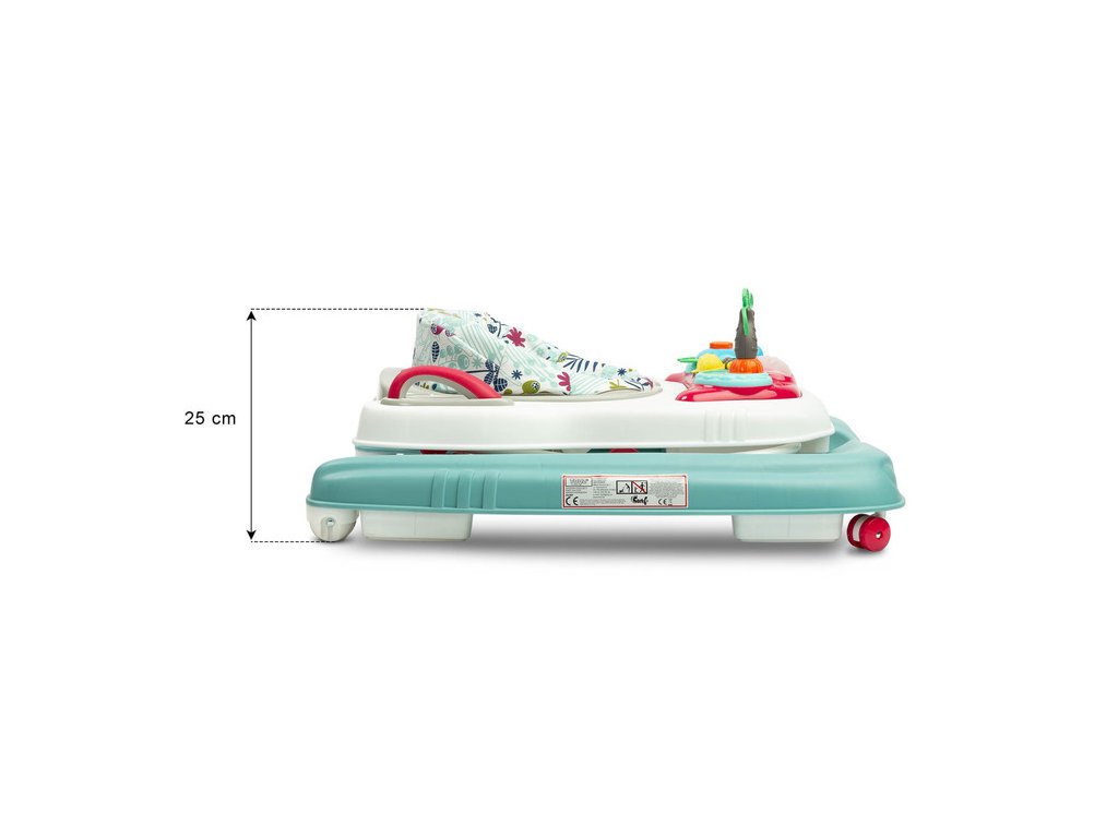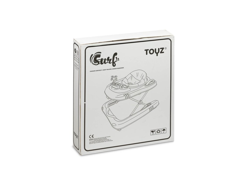 Hračka 2v1 - chodítko a odstrkovadlo. Chodítko Surf je nový model chodítka, který poskytne pohodlí každému batoleti při každodenním poznávání světa. Multimediální plocha a sportovní vzhled vás povzbudí k prvním krůčkům a aktivnímu hraní. Díky madlům umístěným v zadní části chodítka po vyjmutí sedátka poslouží hračka dítěti jako pohodlné odstrkovadlo. Charakteristika: - naučný panel - vybavený řadou různých melodií, - správné polohování zad - poskytuje profilovaný sedák a vyztužené opěradlo. - pohodlné přizpůsobení výšky sedáku výšce dítěte - zajišťuje správný kontakt nohou dítěte se zemí. - přední otočná kola - usnadňují volné manévrování. - gumové dorazy - zabraňují vjíždění do nerovného terénu nebo pádu z vysokého prahu. - jasný návod a jednoduchá montáž - chodítko sestavíte během chvilky. Nosnost: 12 kgDoplňkové parametry