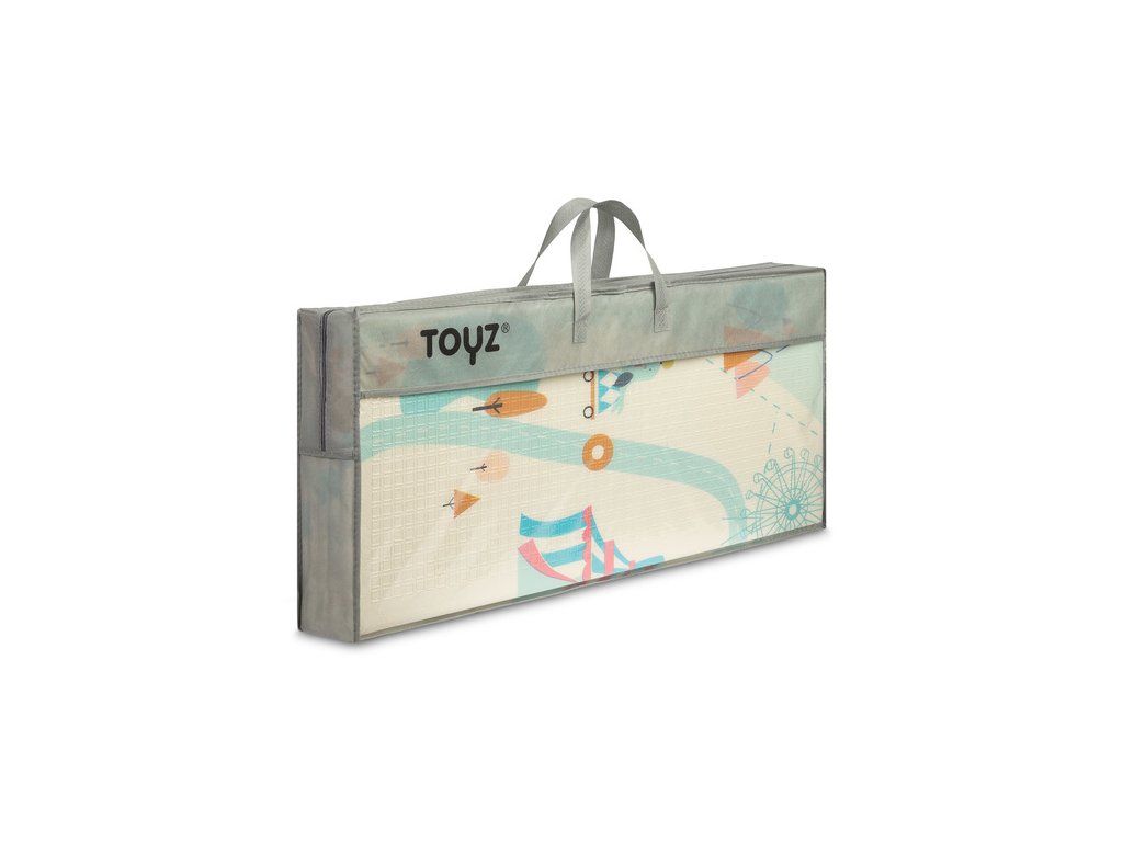 Hrací podložka pěnová - multifunkční TOYZ je perfektním řešením pro vytvoření herního koutku pro děti. Nabízí mnoho výhod oproti látkovým podložkám: nekrčí se ani neshrnuje, což usnadňuje lezení, je obtížné ji posunout a snadno se udržuje v čistotě. Její rozměry 200 x 180 cm poskytují dostatek prostoru pro hraní či nácvik chůze. Díky tlusté pěně XPE (1 cm) je zajištěno měkké přistání při pádu a skvělá izolace od chladu. Oboustranný design umožňuje změnu motivu pro zpestření hry. Podložka má tašku pro snadné skladování a přepravu. Technické údaje: Hmotnost s obalem: cca 1,85 kg. Rozměry balení: 91 x 12 x 41 cm. Hmotnost podložky: cca 1,3 kg. Vhodné pro děti od narození 0+. Klíčové vlastnosti: - bezpečná od narození, - splňuje normu EN 71, - vyrobena z pěny XPE bez škodlivých látek, - velký prostor pro hraní: 200 x 180 cm, - snadná údržba, - protiskluzová, dobře přilnavá, obtížně posuvná, - tloušťka 1 cm pro izolaci od podlahy, - oboustranný potisk, - součástí balení je taška na podložku.Doplňkové parametry