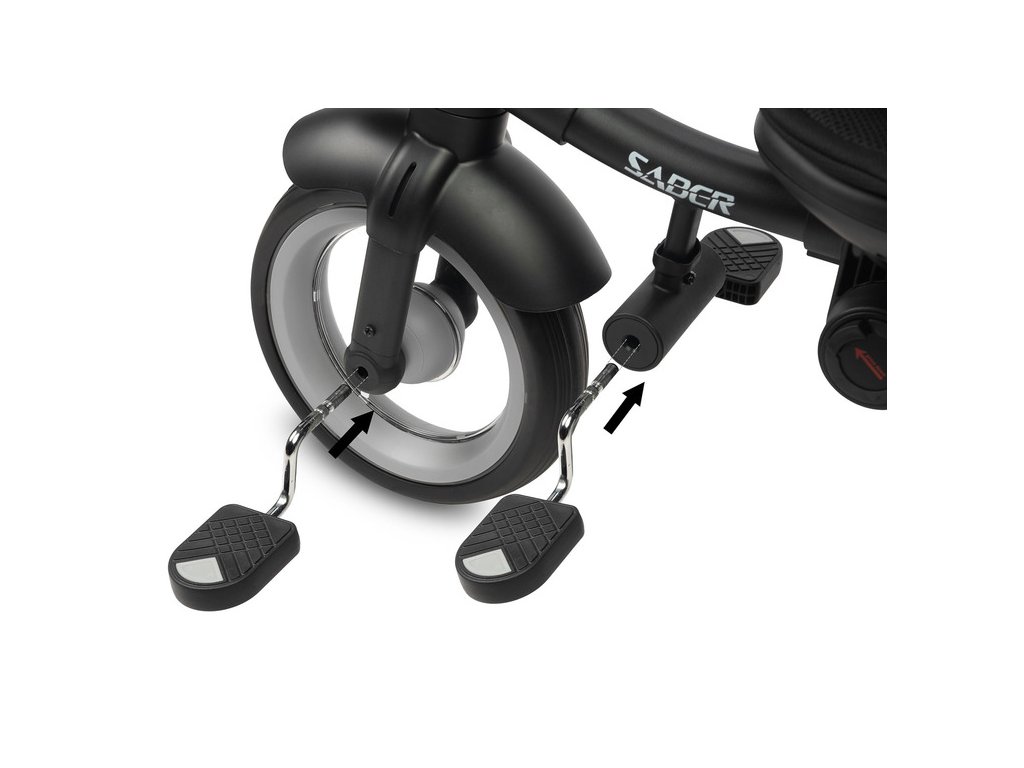 Multifunkční dětská tříkolka SABER: kvalita, bezpečnost a pohodlí. Dětská tříkolka SABER je ideální kombinací funkčnosti, bezpečnosti a moderního designu. Díky modulární konstrukci roste spolu s dítětem a je vhodná pro děti ve věku 3–5 let. Klíčové vlastnosti: Snadná ovladatelnost: Nastavitelná rukojeť pro rodiče zajišťuje pohodlné ovládání ve fázi učení. Komfort dítěte: Otočné sedátko s možností sklopení opěradla a ochranná stříška proti dešti a UV záření. Bezpečnost na prvním místě: 3bodové bezpečnostní pásy, ochranné madlo a odrazky pro vyšší viditelnost. Roste s dítětem: Odnímatelný podnožník a pedály přizpůsobené věku dítěte. Praktické detaily: Úložné koše na drobnosti vpředu i vzadu, snadno skládací konstrukce pro přepravu a skladování. Kvalitní konstrukce: Kovový rám a odolná PU kola zabraňující defektu. Tříkolka SABER poskytuje maximální pohodlí nejen dítěti, ale i rodičům díky přizpůsobitelné rukojeti a nezávislým nožním brzdám. Jednoduchý skládací mechanismus navíc umožňuje snadnou manipulaci a uskladnění. Bezpečnostní pokyny: Produkt je určen pro děti od 3 do 5 let s maximální nosností 25 kg. Dítě musí být vždy pod dozorem dospělé osoby a používat ochranné vybavení (helmu, chrániče). Objevte kvalitu a funkčnost dětské tříkolky SABER, která se stane skvělým společníkem na všech vašich rodinných výletech!Doplňkové parametry