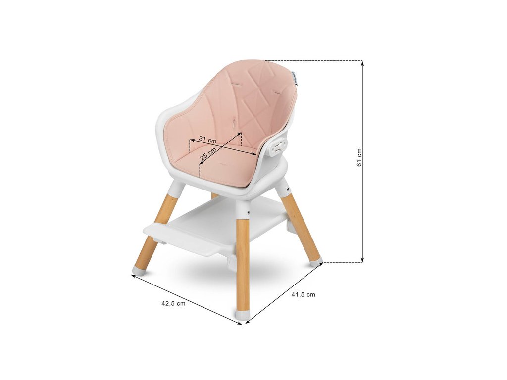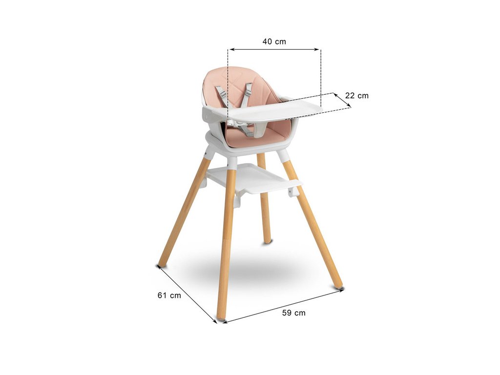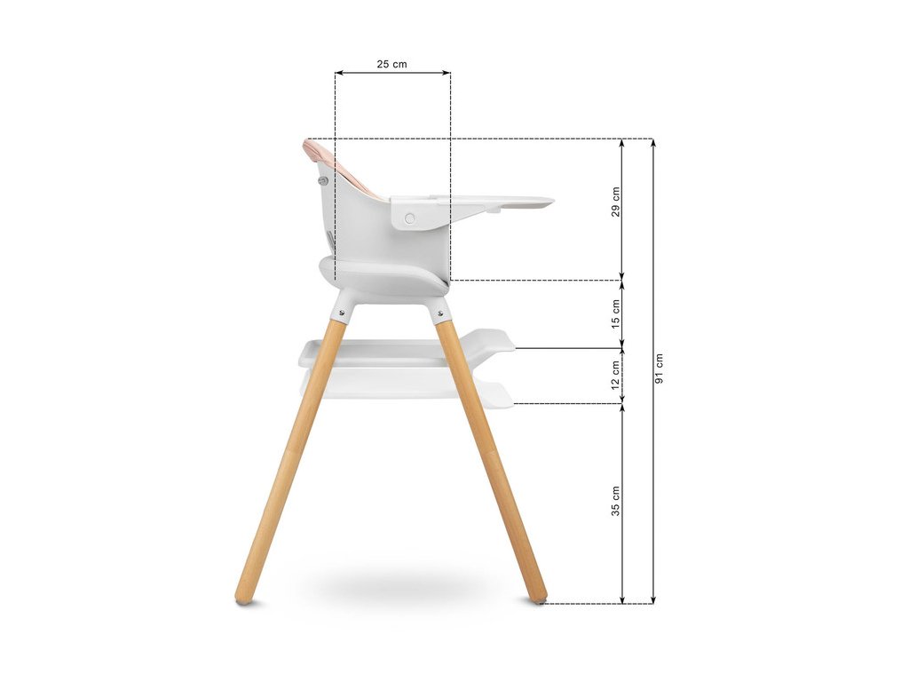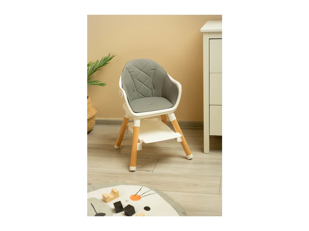 Bravo lze využít mnoha způsoby: s funkcí vysoké židle, nízkého sedáku a taburetu (vysokého i nízkého). Má dvě úrovně nastavení opěrky nohou (16 cm a 24 cm) zajišťující pohodlí pro starší děti. Při krmení profilovaný tác zajistí, že se nic nevysype na podlahu, čalounění z ekokůže a plastové sedátko usnadňují rychlé a pohodlné čištění. Stabilitu zajišťují čtyři nohy celé z masivního dřeva. Charakteristika: Multifunkční - vysoká židle, která se snadno promění v nízkou židli nebo stoličku. Jedinečný design a jemné barvy. Měkké, pohodlné sedadlo s 5-ti bodovým pásem. Masivní nohy z masivního dřeva. Protiskluzové nožičky. Odnímatelné, snadno čistitelné čalounění z ekologické kůže. Odnímatelný zásobník s odnímatelnou horní částí. 2-stupňově nastavitelná opěrka nohou. Pro děti: od 6 měsíců do 15 kg. Rozměry: Vnější rozměry: 58x63x90 cm. Rozměry sedáku: 26x26x28 cm. Maximální nosnost: 15 kg. Norma: EN: 14988:2017+A1:2020.Doplňkové parametry