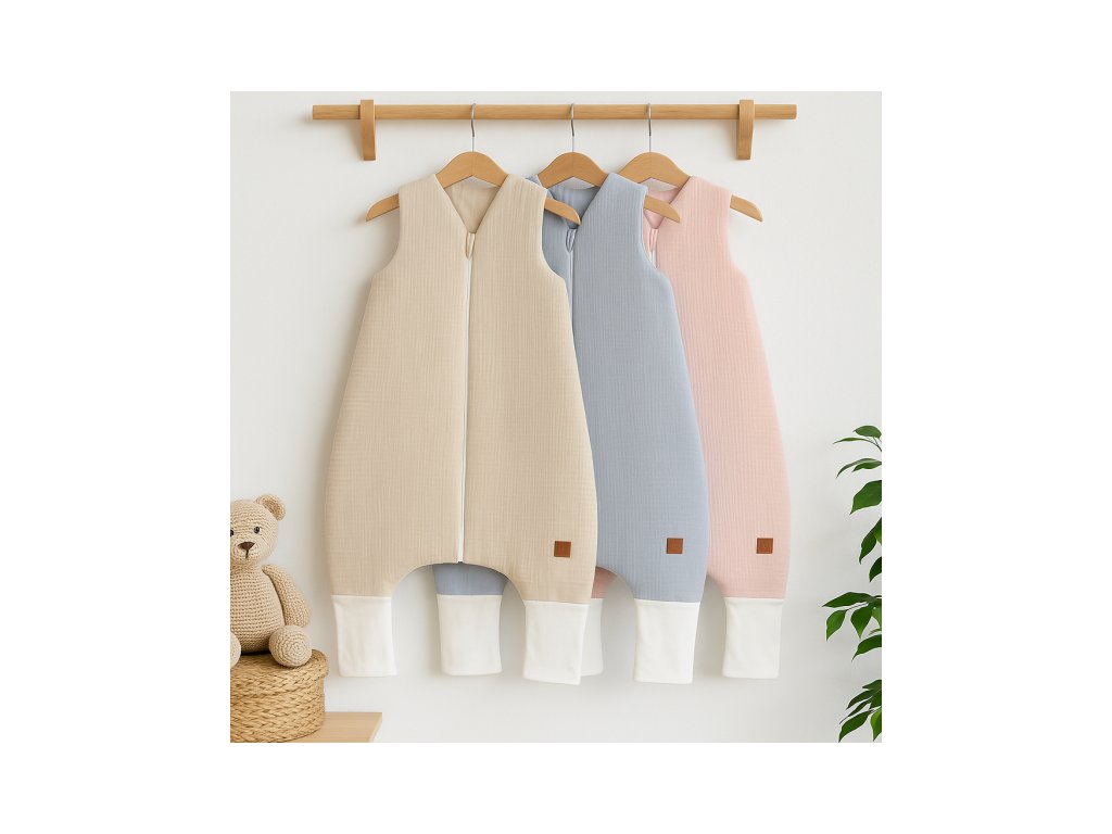 Dětský letní spací vak se zahrnovacími nohavičkami je vyrobený ze 100% bavlny/mušelínu.Další výhody: Tím že je bez rukávů neomezuje miminko v pohybu a zajišťuje vynikající ventilaci během spánku.