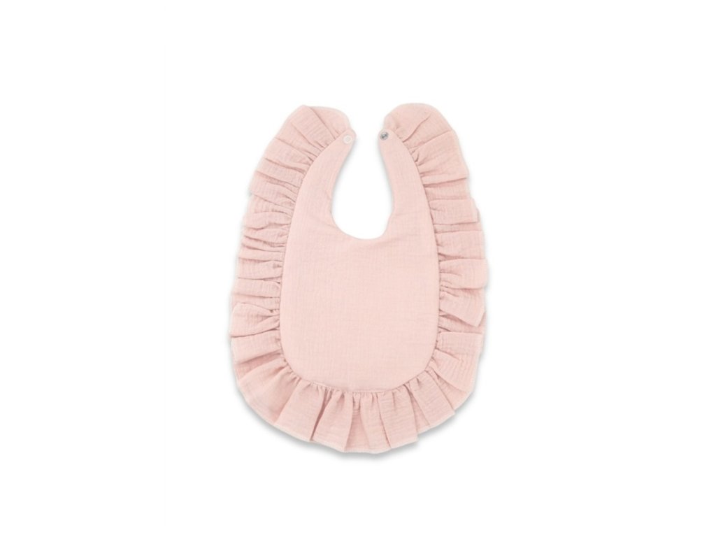 Nepromokavý mušelínový bryndáček s volánkem Nature - pudrově růžová