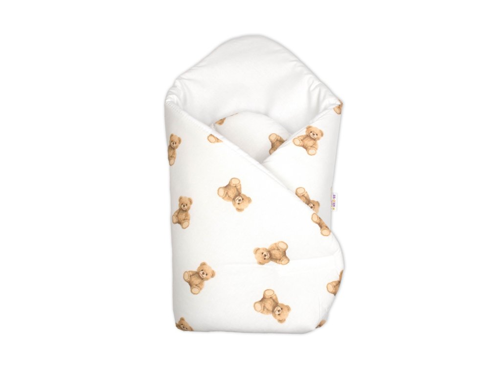 Novorozenecká bavlněná zavinovačka, Míša - bílá s potiskem