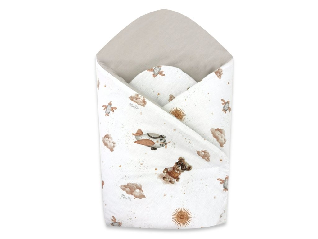 Novorozenecká zavinovačka, bavlna, Méďa pilot - bílá, béžová