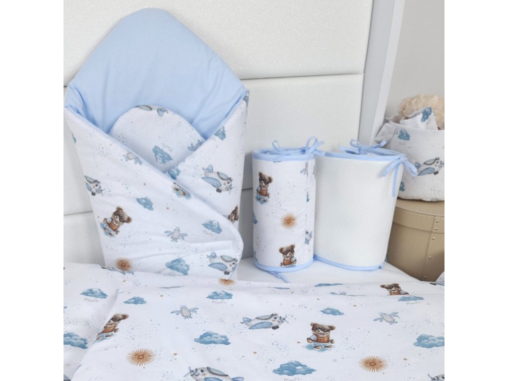 Novorozenecká zavinovačka, bavlna, Méďa pilot - bílá, modrá