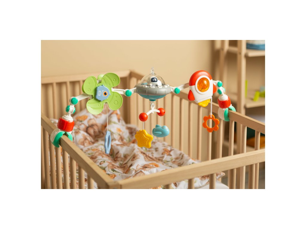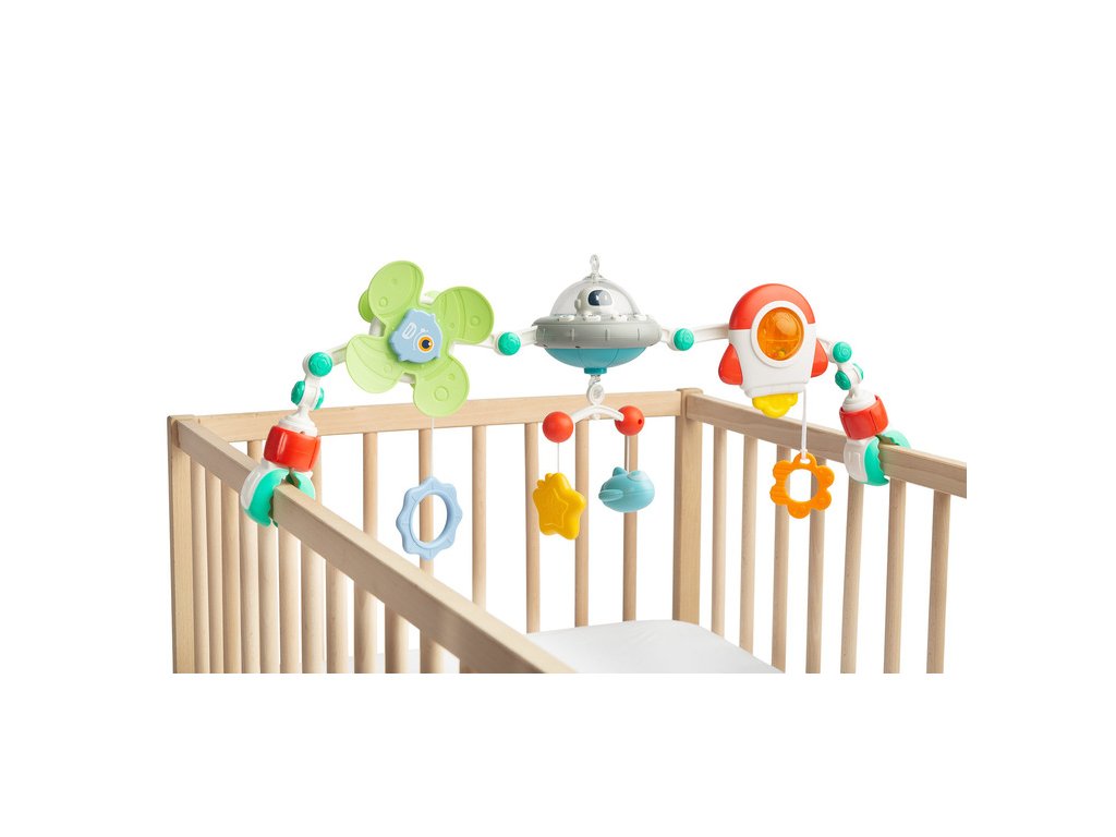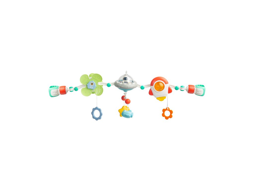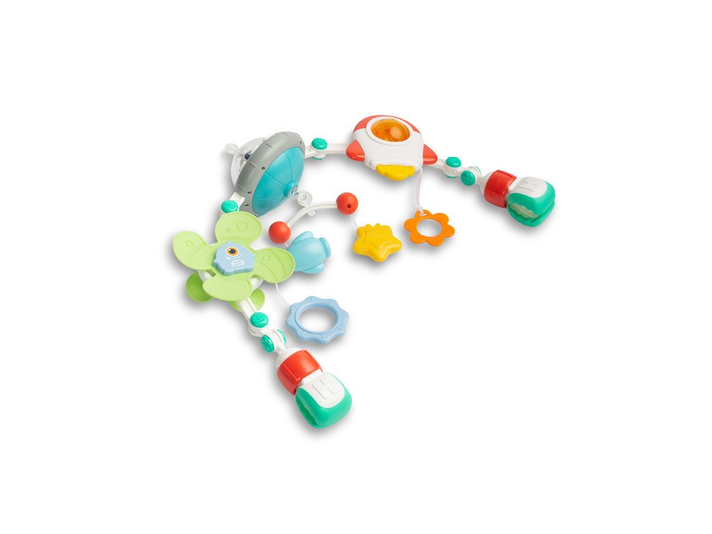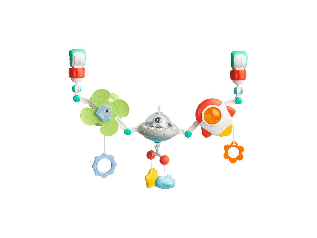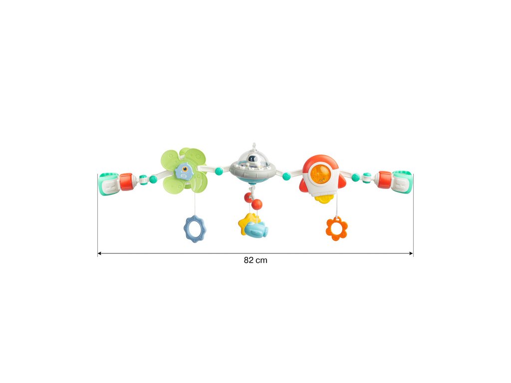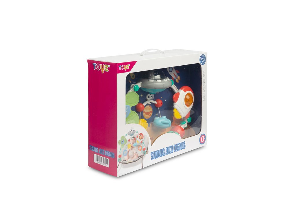 Oblouk s hračkami Kosmos od Toyz je skvělou volbou pro váš malý zázrak! Poskytne mu nejen skvělou zábavu, ale také podpoří jeho senzorický vývoj. Oblouk s hračkami Kosmos je vybaven různými hračkami, které byly navrženy tak, aby podporovaly pohyby a zvědavost dítěte. Hlavní předností je svítící hudební panel s otáčivým kolotočem, který při přehrávání jemných melodií pomáhá uspávat miminko. Díky elastickému a ohebnému uchycení a suchým zipům lze pałąk Kosmos snadno pověsit nebo přichytit nejen na kočárek, ale téměř kdekoliv jinde (např. autosedačku, houpačku, lehátko, židličku na krmení či postýlku). Rozměry výrobku: maximální šířka: 82 cm. Vhodné pro děti již od narození. Hmotnost čistá: 0,6 kg. Hmotnost s obalem: 1,1 kg. Rozměry balení: 44 x 34 x 13cm.Doplňkové parametry