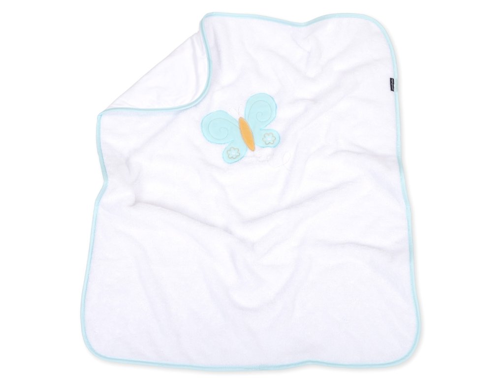 Oboustranná chlupáčková dečka s vyšívkou 75 x 90 cm, Motýlek, bílá/modrá