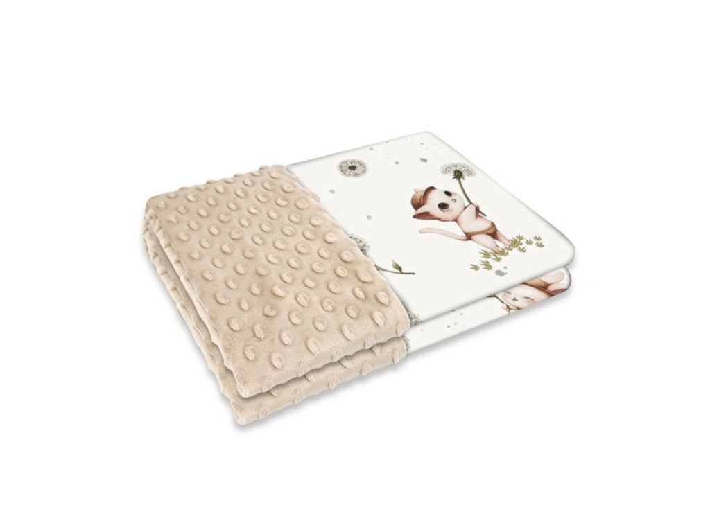 Oboustranná deka, Bavlna/Minky 100 x 75 cm, Kocourek a pampeliška - bílá, béžová