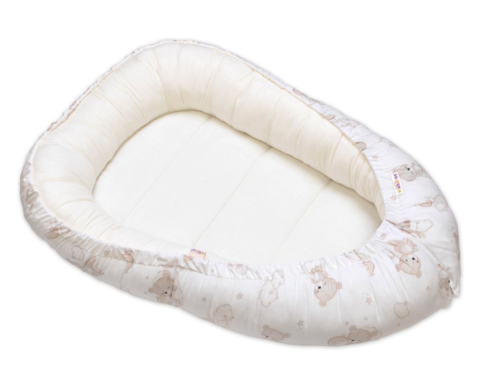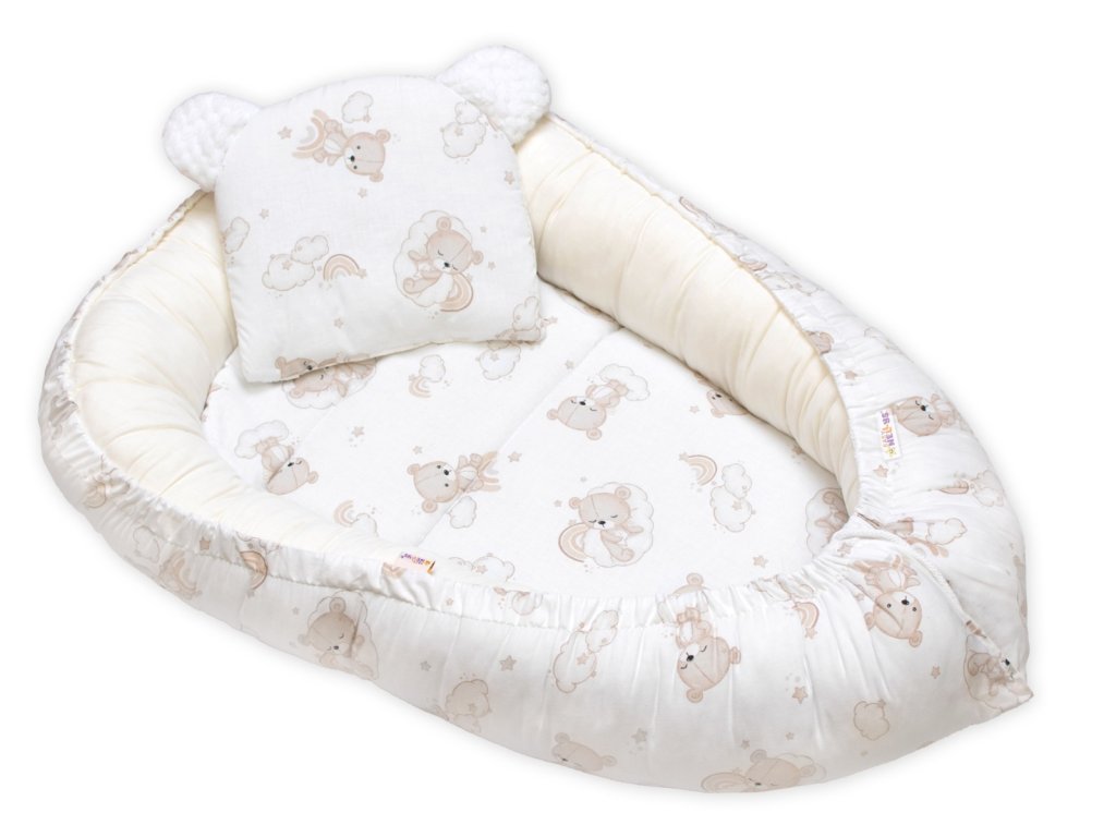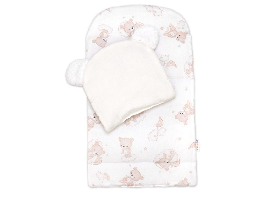 Oboustranné hnízdečko, podložka + polštářek 3D, Bavlna, Malý medvídek, bílé