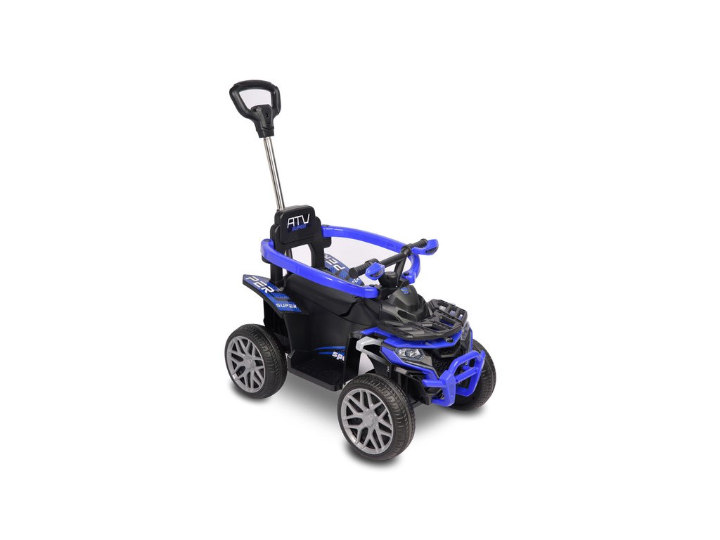 Odrážedlo Movix – malá čtyřkolka, velká zábava! Odrážedlo Movix značky TOYZ potěší všechny malé nadšence pohybu. Svým designem připomíná skutečný čtyřkolový motocykl – spojuje sportovní styl, bezpečnost i pohodlí. Ideální pro děti od 24 měsíců, které milují aktivní hru doma i venku. Rukojeť pro rodiče – kontrola a pohodlí Součástí je pevná kovová rukojeť pro snadné vedení a plnou kontrolu nad odrážedlem. Umožňuje rodičům pomoci dítěti při prvních jízdách. Kovová konstrukce je mnohem stabilnější než plastové varianty a vydrží i náročnější používání. Rukojeť lze jednoduše odpojit a proměnit tak Movix v samostatné odrážedlo pro starší děti. Bezpečnost na prvním místě O bezpečnost se stará ochranná zábrana, která zajišťuje stabilitu dítěte během jízdy. Podnožky zase poskytují pohodlí a jistotu při sezení. Robustní konstrukce zajišťuje pevnost a spolehlivost – dítě si může užívat jízdu v interiéru i venku bez obav. Komfortní jízda a funkční detaily Ergonomicky tvarované sedátko z eko kůže je měkké a příjemné, ideální pro delší hraní. Pěnová kola jsou tichá, nezanechávají stopy a zvládnou různé povrchy. Protiskluzová řídítka padnou perfektně do dětských rukou a usnadňují řízení. Zvukové a světelné efekty Tlačítko s melodiemi a svítící prvky proměňují každou jízdu v zábavné dobrodružství. Dítě si tak rozvíjí sluch i představivost formou interaktivní hry. Parametry: • Věk dítěte: od 24 měsíců • Materiál: kov + plast + eko kůže • Kola: pěnová EVA • Efekty: zvukové a světelné • Rukojeť: odnímatelná, kovová • Značka: TOYZ Upozornění: Používejte pod přímým dohledem dospělé osoby. Výrobek není určen pro jízdu po veřejných komunikacích. Splňuje evropské bezpečnostní normy EN 71. Před prvním použitím pečlivě prostudujte návod k použití. Odrážedlo Movix je skvělou volbou pro všechny rodiče, kteří chtějí dětem dopřát bezpečnou a zábavnou jízdu v kombinaci s moderním designem. Perfektní tip na dárek pro malého řidiče či řidičku!Doplňkové parametry