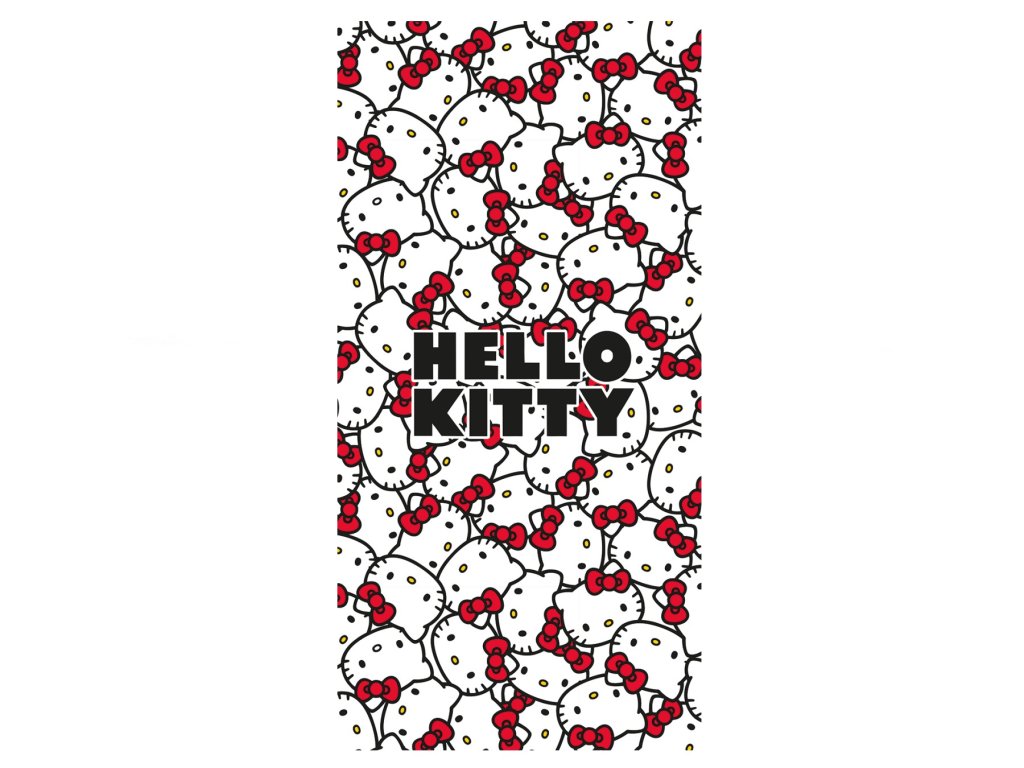 Roztomilý motiv s opakujícími se tvářemi Hello Kitty a výrazným nápisem „HELLO KITTY“ uprostřed. Ideální pro malé i velké fanoušky této ikonické kočičky.