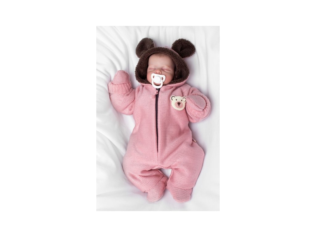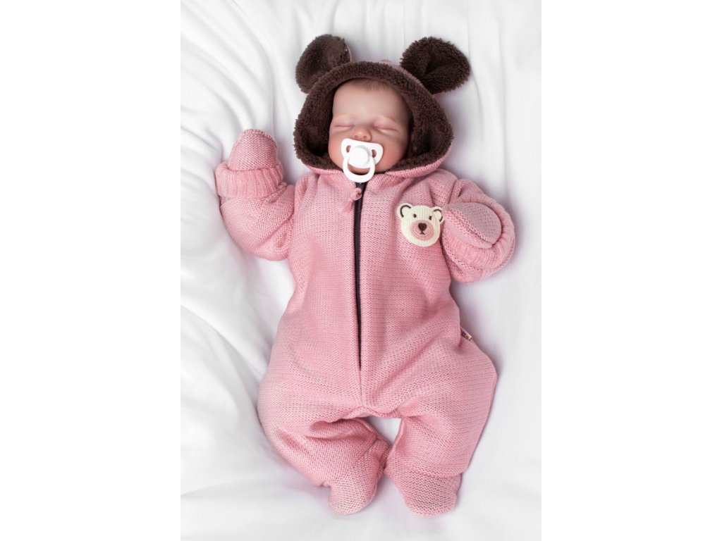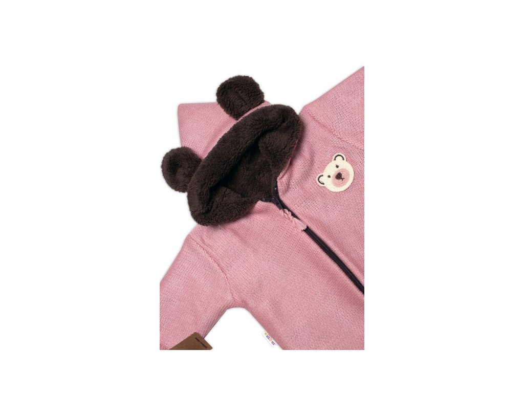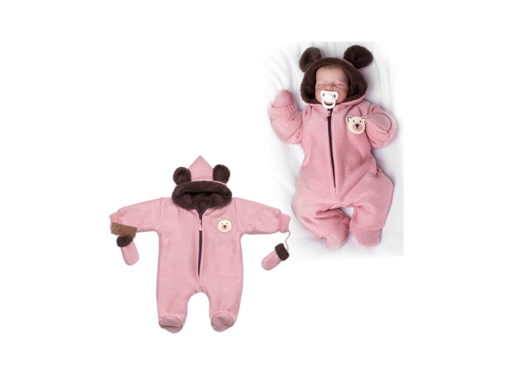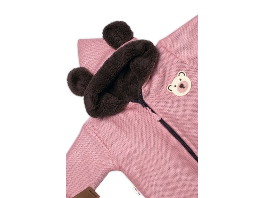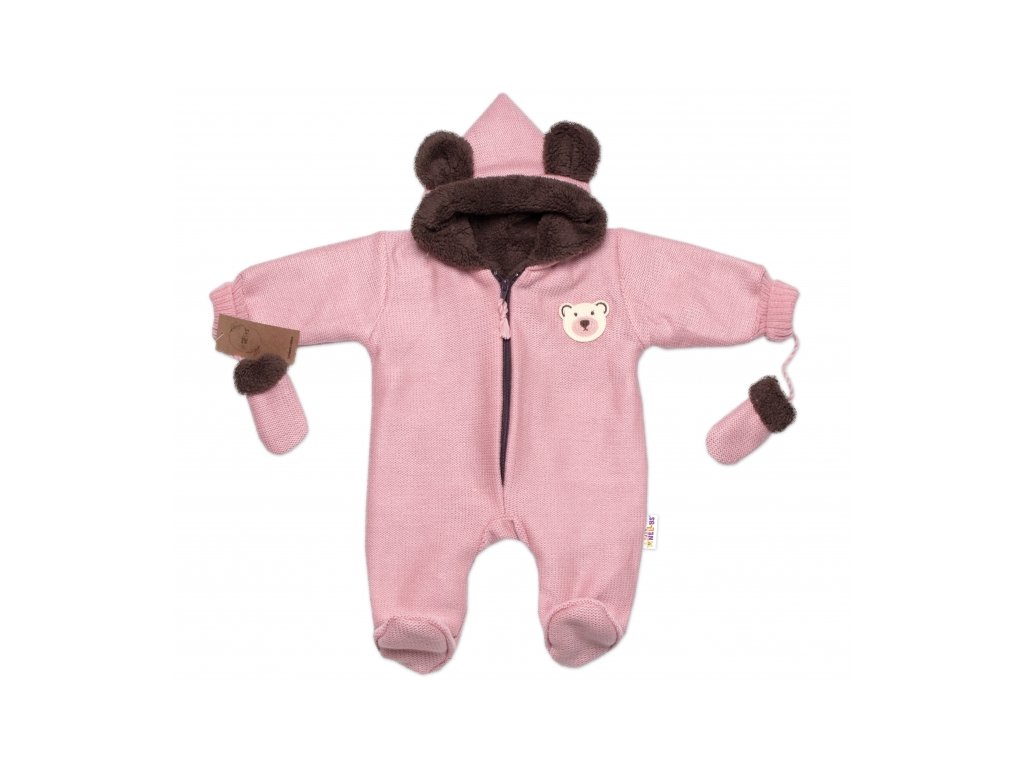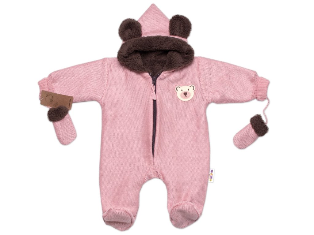 Oteplená pletená kombinéza s rukavičkama Teddy Bear, Baby Nellys, dvouvrstvá, růžová