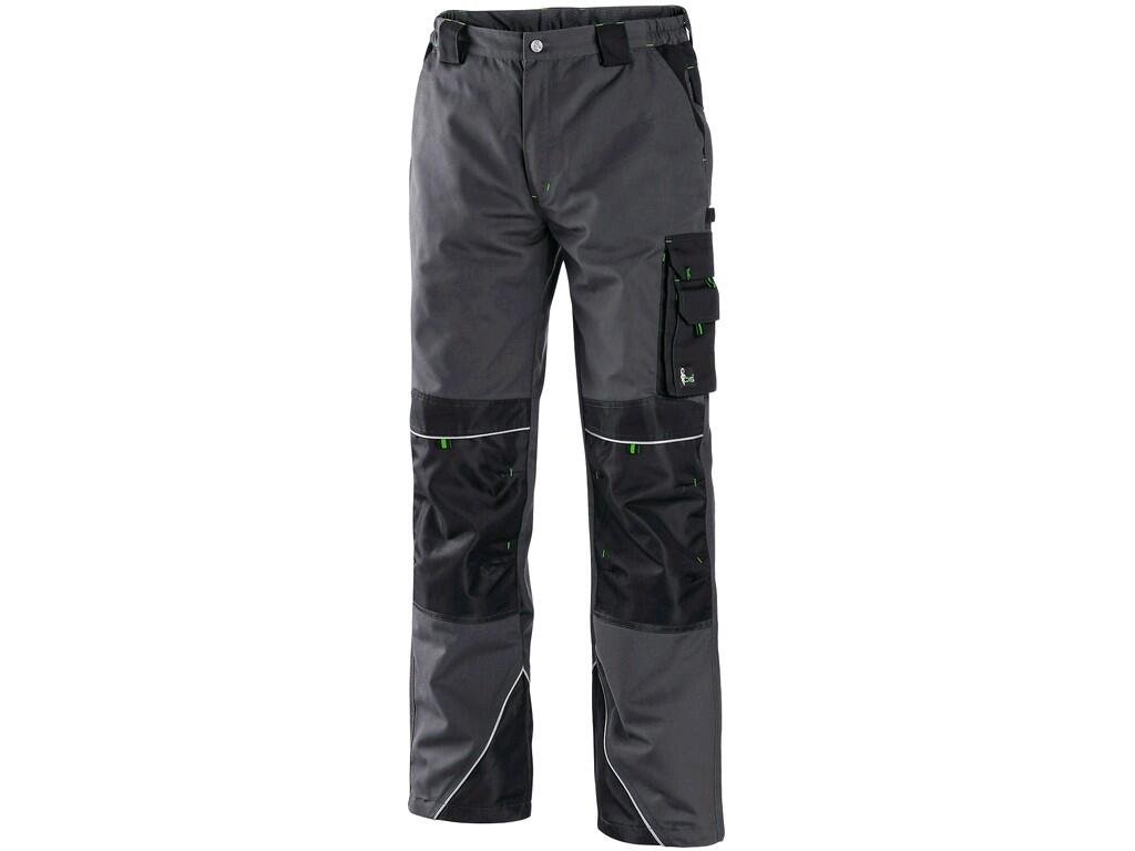 Pánské montérkové kalhoty, pas s poutky na opasek a gumou v bocích, přední klínové kapsy, multifunkční kapsy na obou stranách, kolena zesílena materiálem 600D polyesterem s možností vložení kolenních výztuh, dvě zadní kapsy s klopami, spodní část nohavic vyztužena materiálem 600D polyester, reflexní doplňky. Doporučené použití: stavebnictví, strojírenství, lehký průmysl, automobilový průmysl, logistika, skladová manipulace, spedice, autoservisy, údržba, montáže, zemědělství, zahrada, hobby.