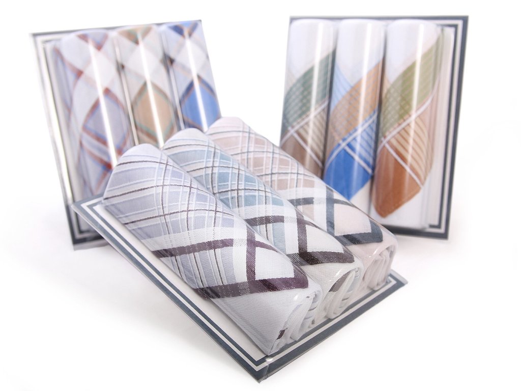 Pánské kapesníky M14 světlé dárková krabička (3 ks)