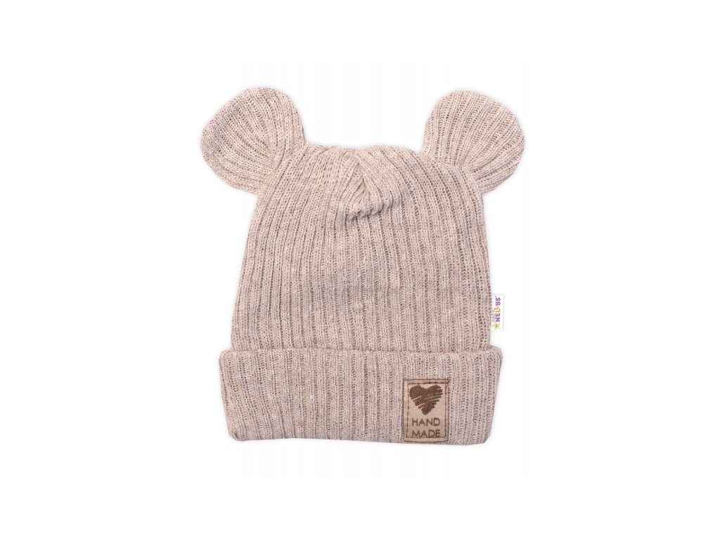 Pletená bavlněná čepice s oušky, dvouvrstvá, Hand Made Baby Nellys, béžová