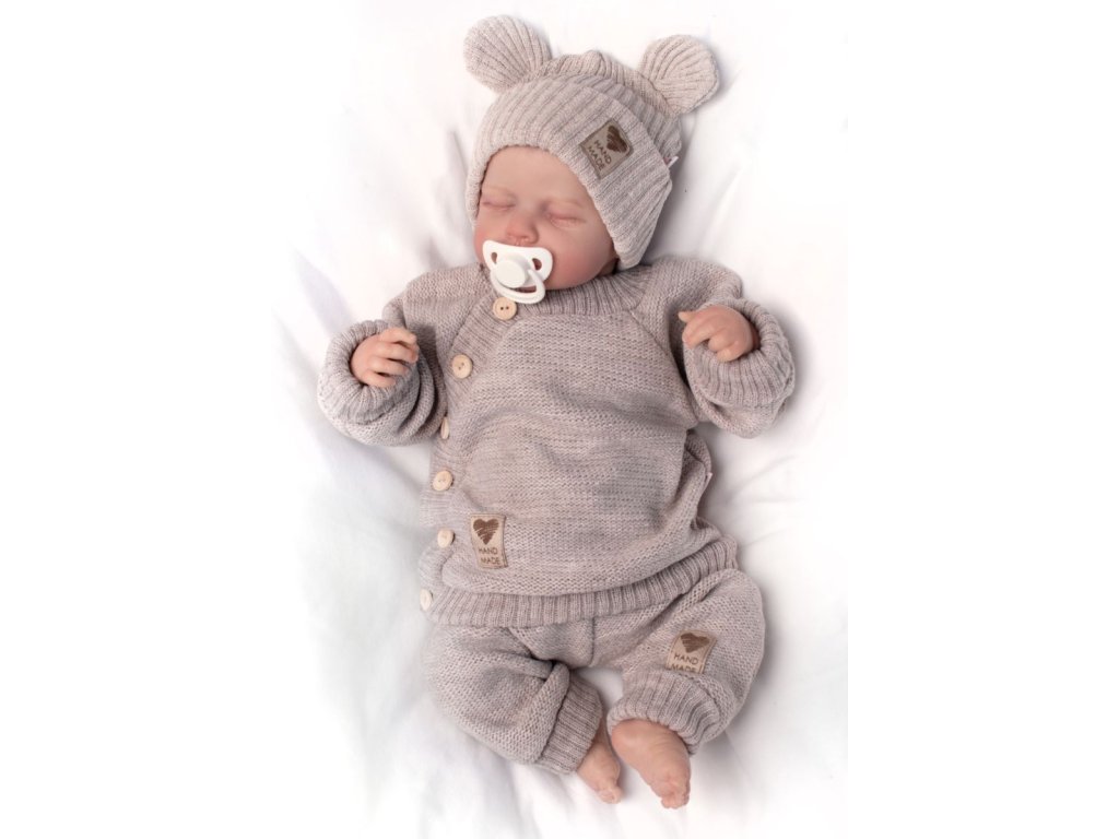 Pletená bavlněná čepice s oušky, dvouvrstvá, Hand Made Baby Nellys, béžová