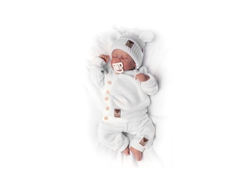 Pletená bavlněná čepice s oušky, dvouvrstvá, Hand Made Baby Nellys, bílá