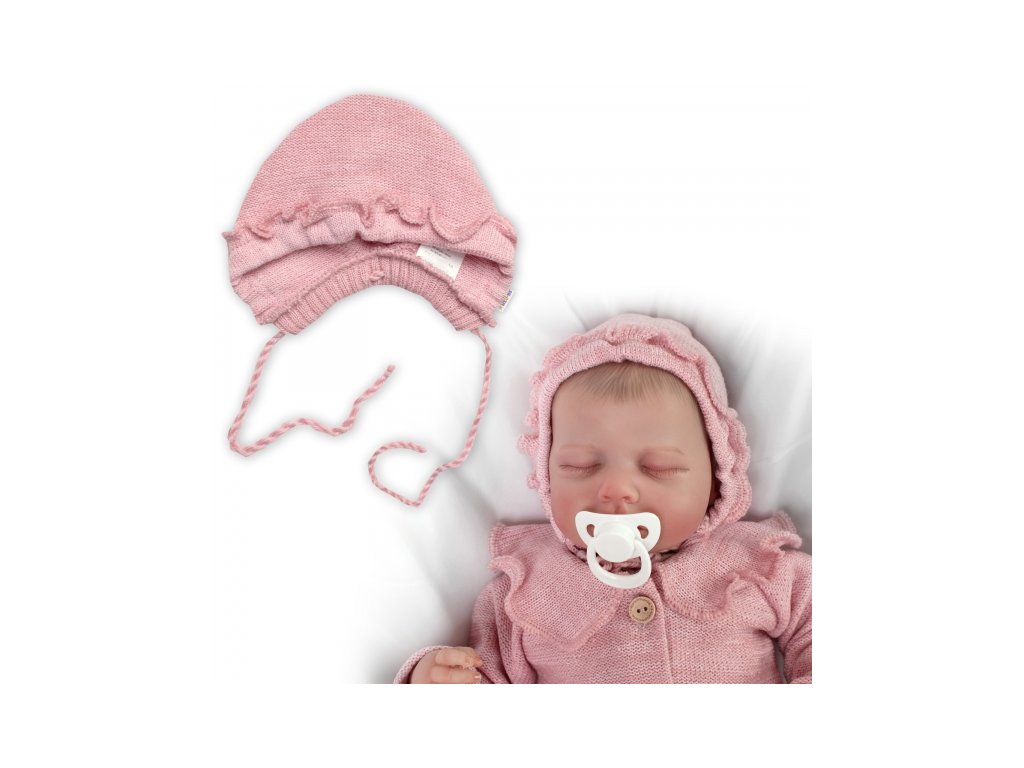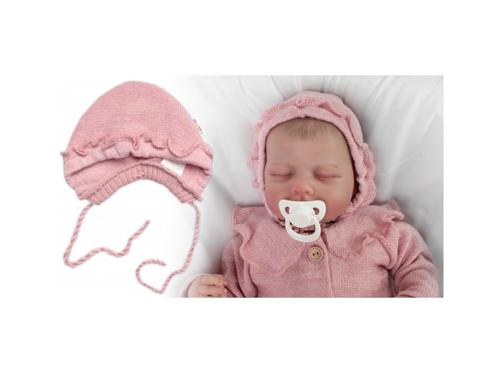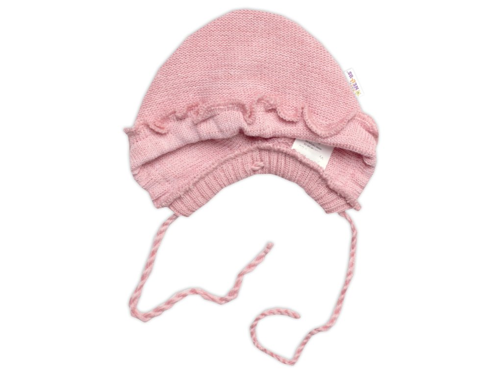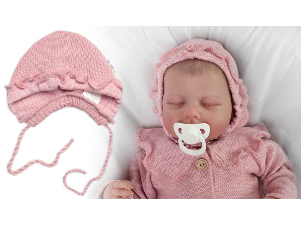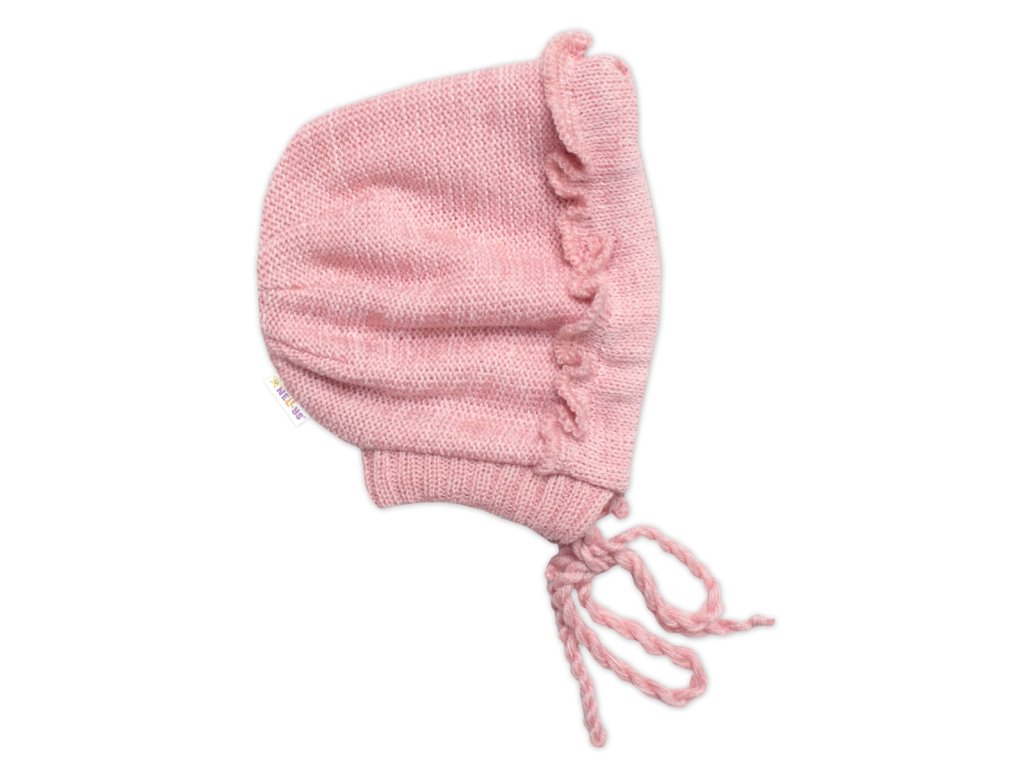 Pletená čepička na zavazování bonetka Girl, Hand Made Baby Nellys, pudrová, růžová