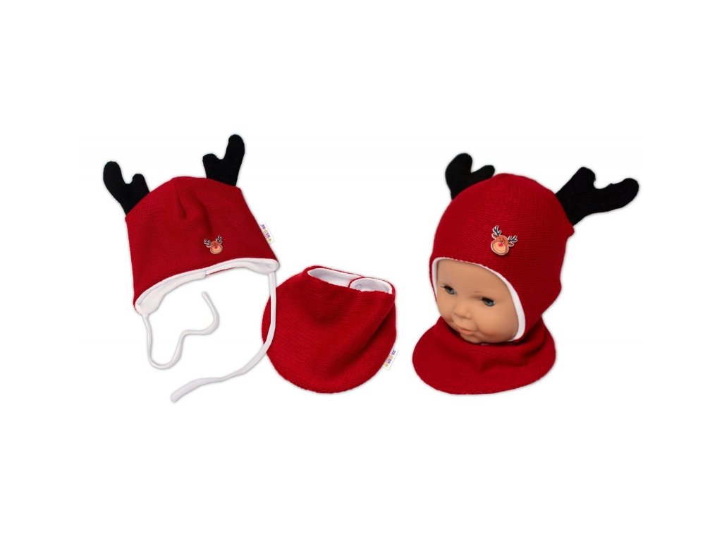 Pletená dvouvrstvá čepice s šátkem Sobík, červená/bílá