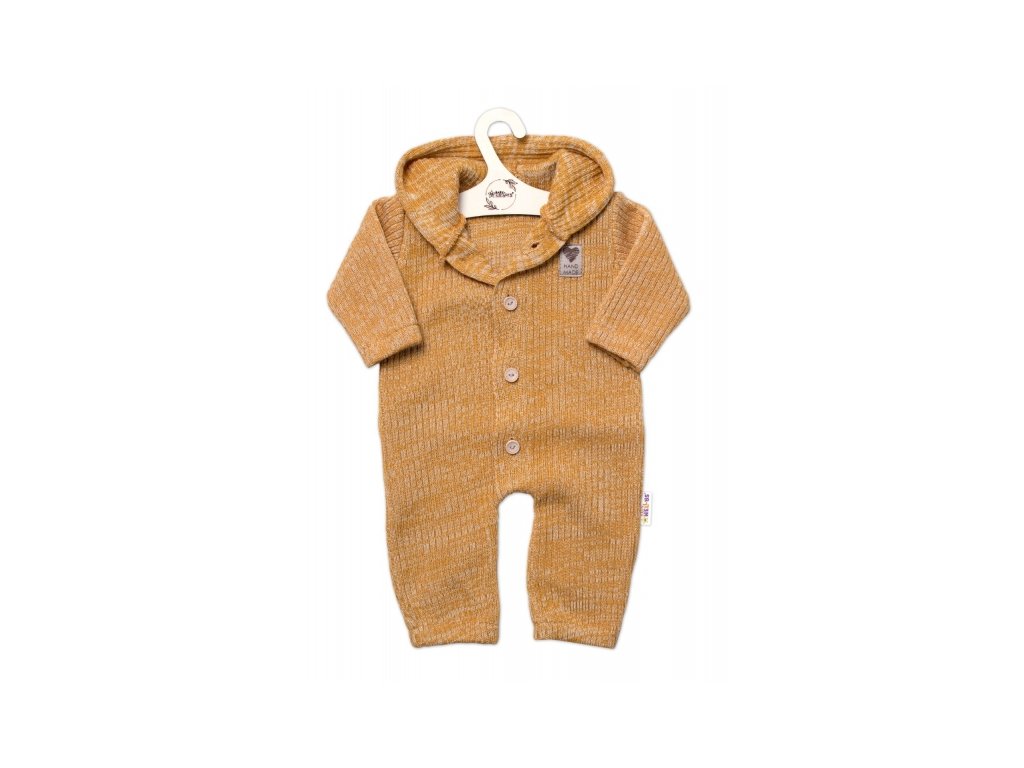 Pletený overálek s kapucí a knoflíčky Hand Made, medový žihaný