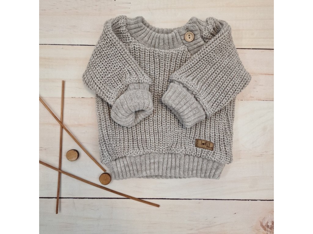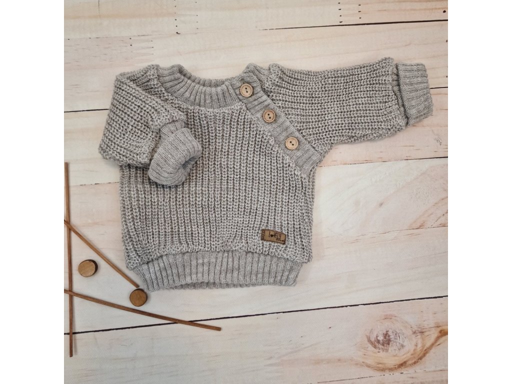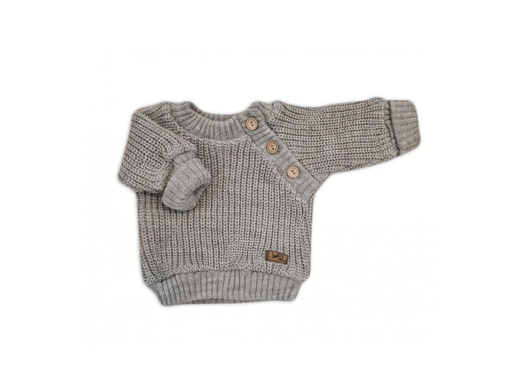 Pletený svetřík pro miminko s knoflíčky Lovely, prodloužené náplety, tm. šedý, 56/62