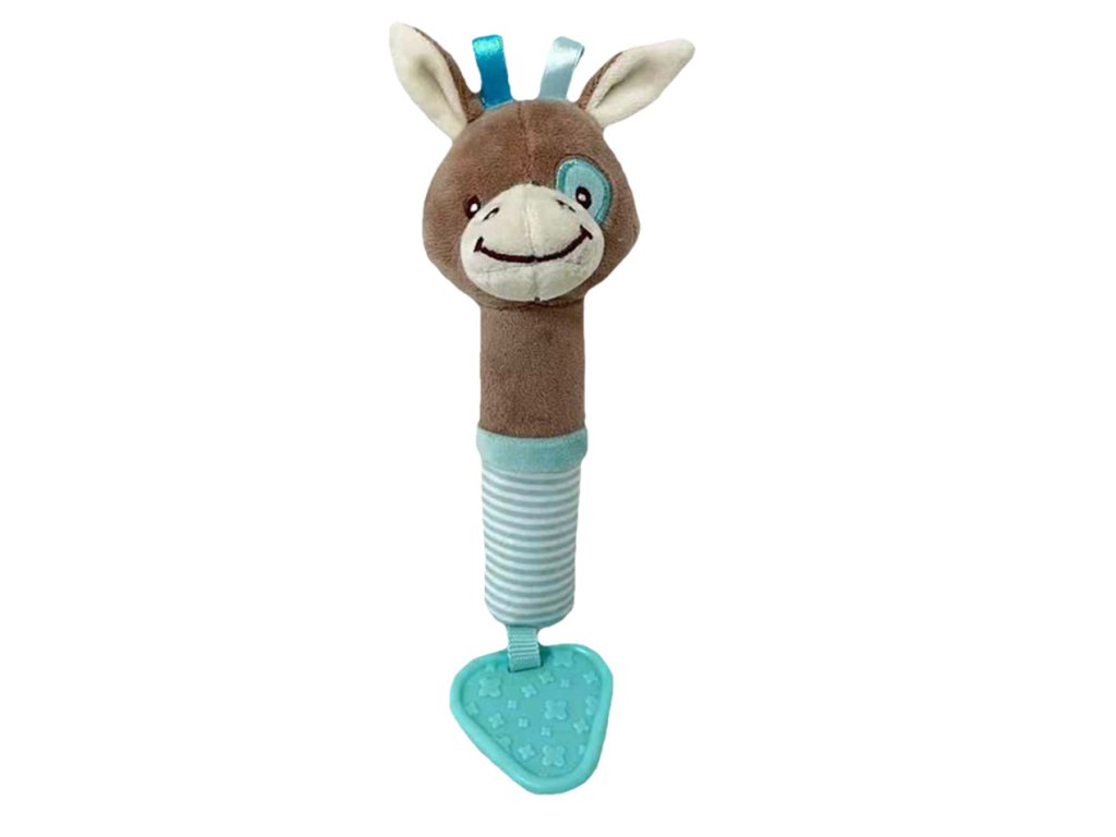 Plyšová hračka s pískátkem a kousátkem Oslík, 17 cm - modrá, hnědá