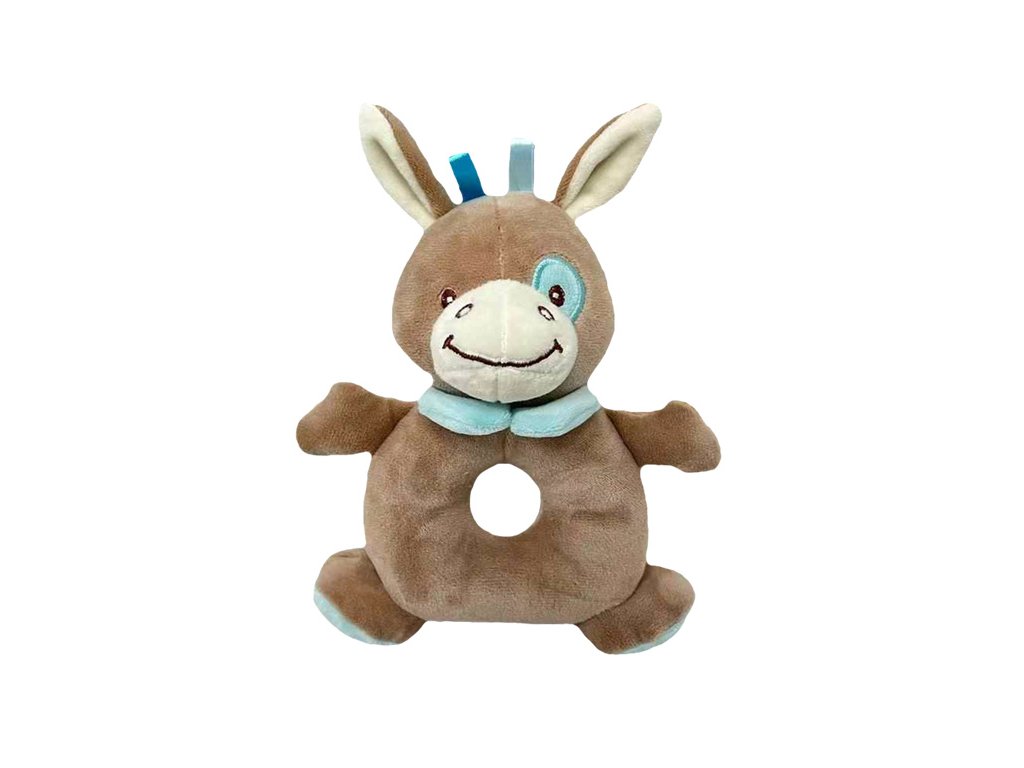 Plyšové chrastítko Oslík - hnědé, 18 cm