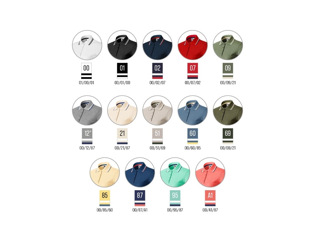 lehce vypasovaný střih s bočními švy límeček z žebrového úpletu 1:1 2 kontrastní proužky na rukávu a límečku úzká léga s 4 knoflíčky v barvě materiálu spodní knoflíček přišitý kontrastní nití vnitřní průkrčník začištěn kontrastní páskou zpevnění ramenních švů páskou rozparky v bočních švech s kontrastní páskou zboží II. jakosti, na zboží II. jakosti se nevztahuje reklamacePique, 65 % bavlna, 35 % polyester (barva 12 složení se může lišit - 85 % bavlna, 15 % viskóza)